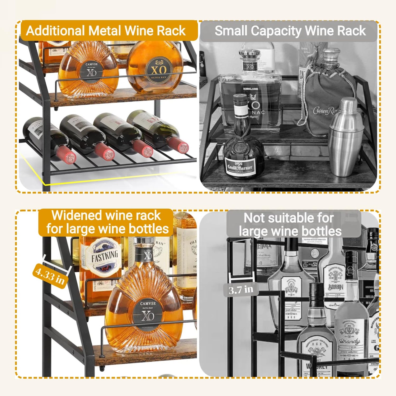 - Multi-functional Design: This counter top wine rack is ideal not only for showcasing wine collection, but also serves as a spice rack or coffee bar organizer for countertop in your coffee bar, fulfilling multiple needs with style and practicality.