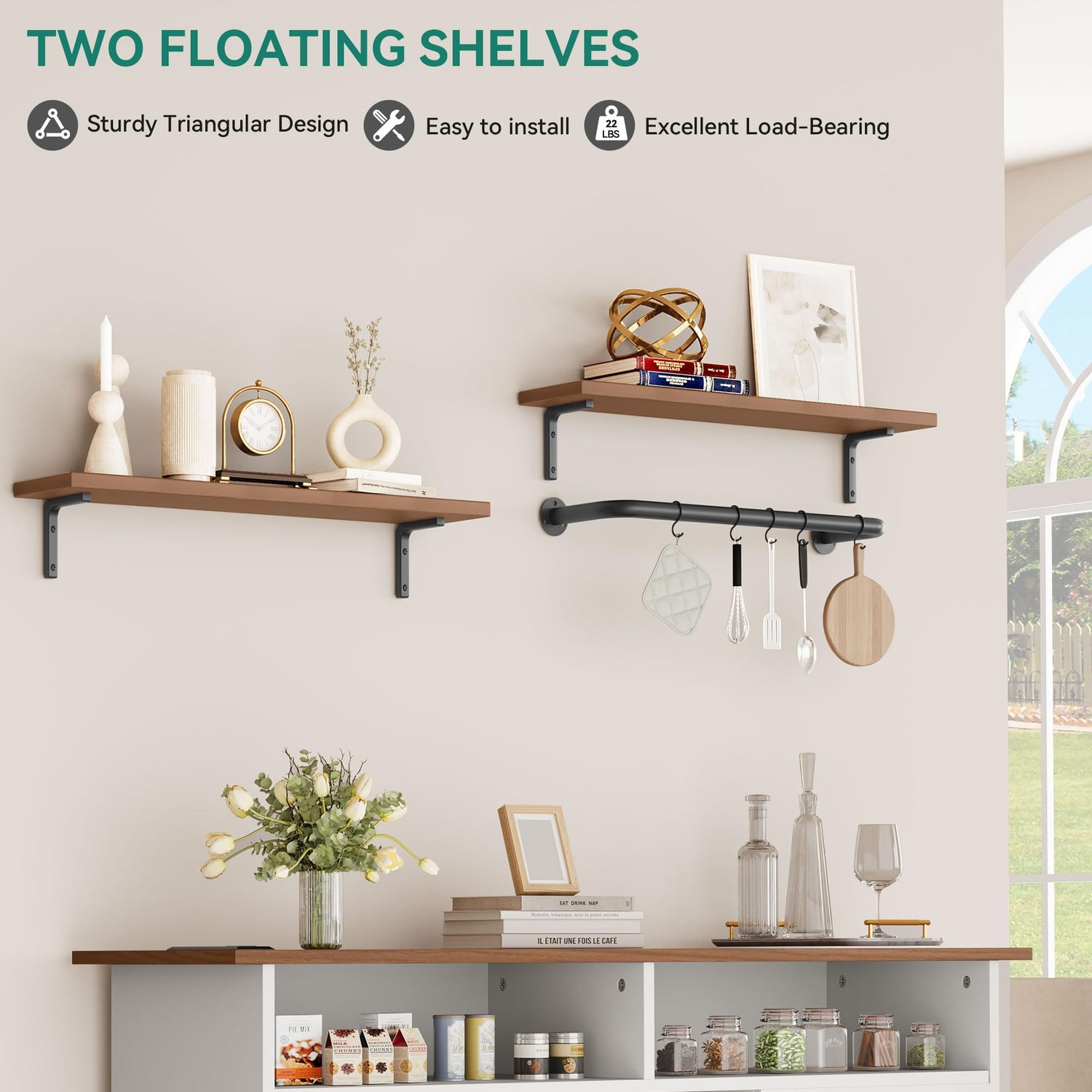 - Wall-Mounted Shelves: Includes 2 floating shelves and a hanging rod for extra storage of small bottles, jars, cups, and kitchen accessories, enhancing organization and accessibility