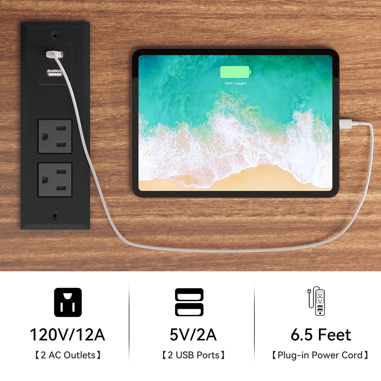- Power Convenience: Equipped with a power outlet featuring 2 USB ports and 2 standard 3-hole sockets for easy charging of coffee makers, phones, tablets, and other devices