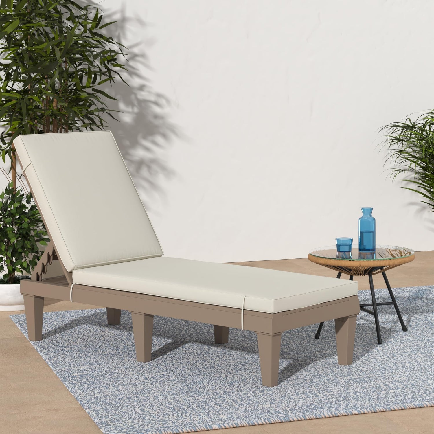 Best Choice Products Outdoor Lounge Chair, Resin Patio Chaise Lounger for Poolside, Backyard, Porch w/Seat Cushion, Adjustable Backrest, 5 Positions, 330lb Capacity - Brown/Ivory