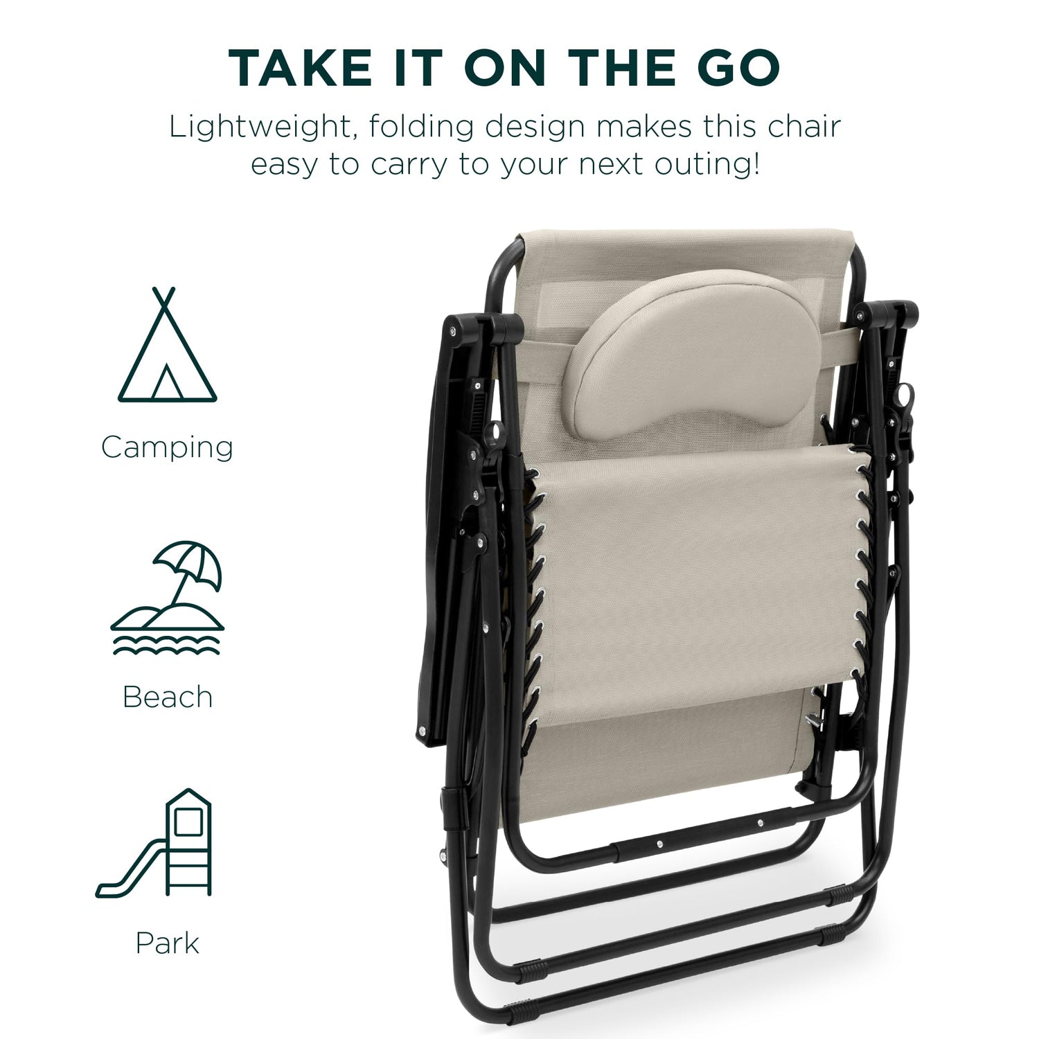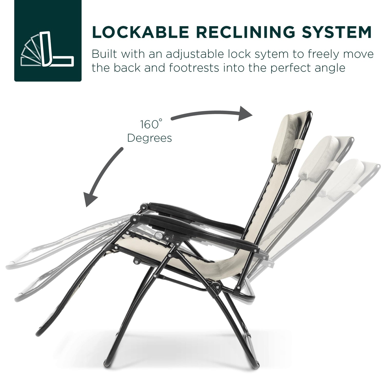 Best Choice Products Oversized Zero Gravity Chair, Folding Outdoor Patio Lounge Recliner w/Cup Holder Accessory Tray, Pillow - Ivory