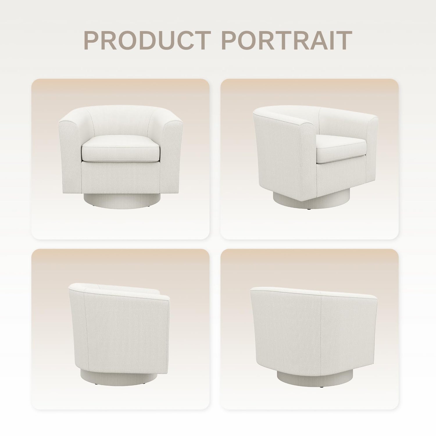 Details: COLAMY Upholstered Swivel Barrel Accent Chair with Ottoman, Modern Single Sofa Lounge Armchair Club Chair with Storage Space for Living Room Bedroom Office, Beige