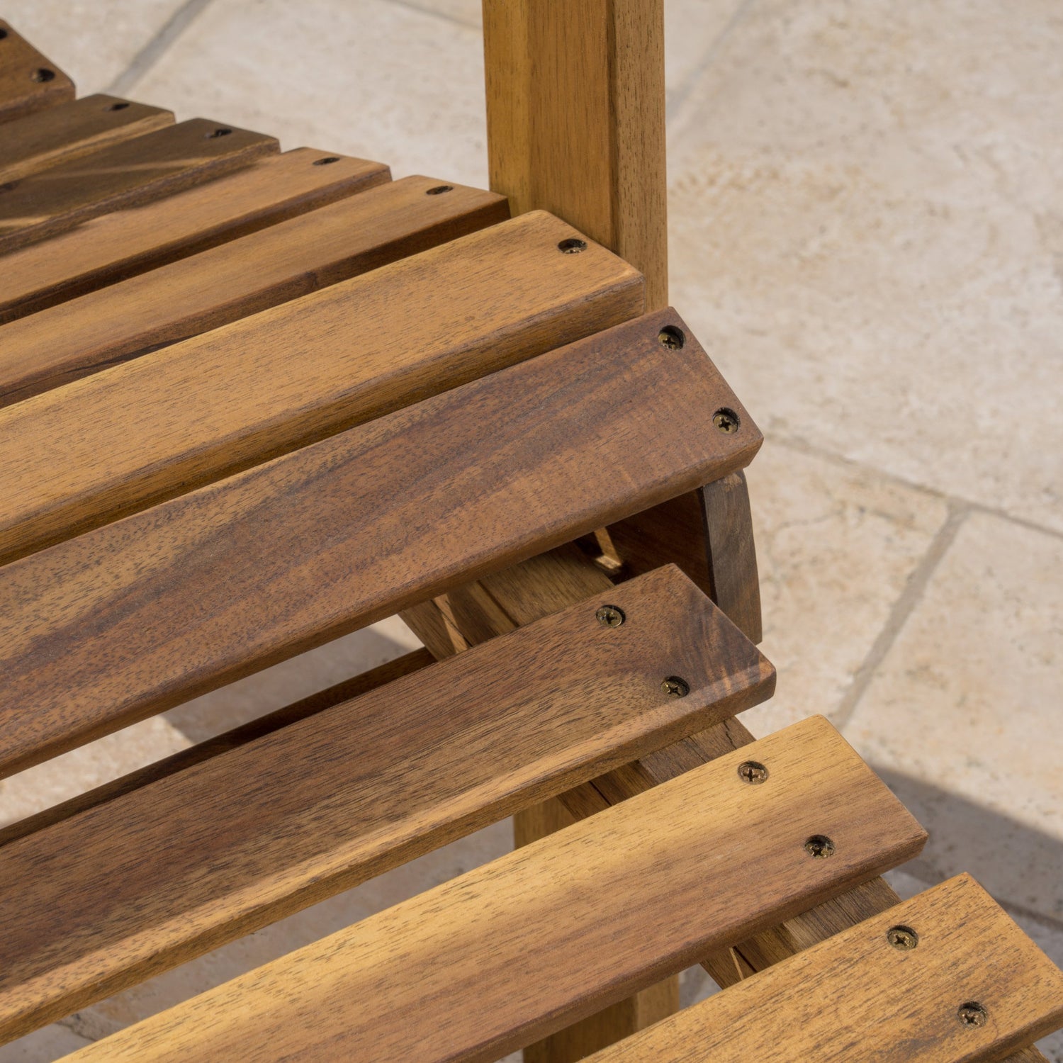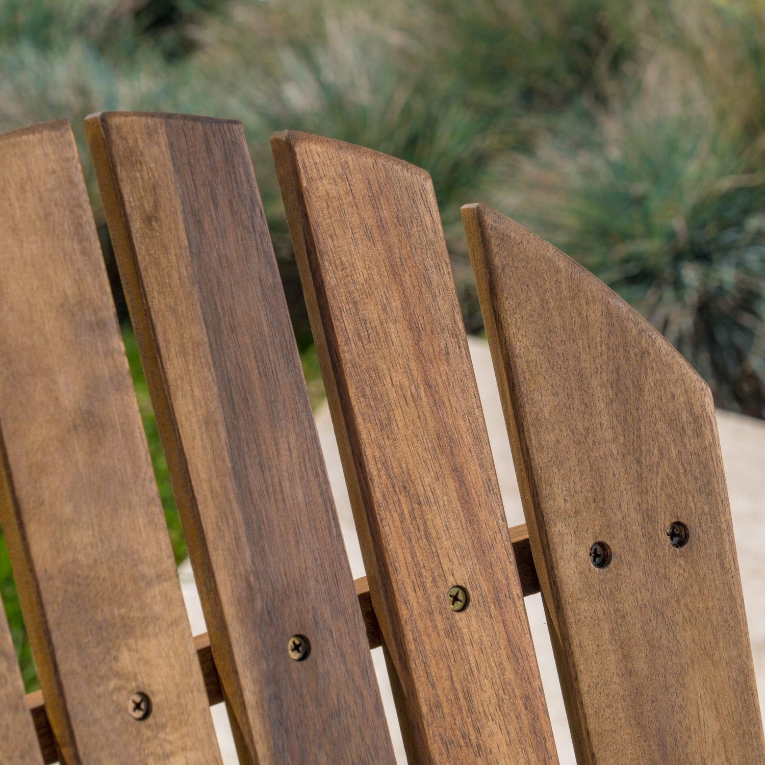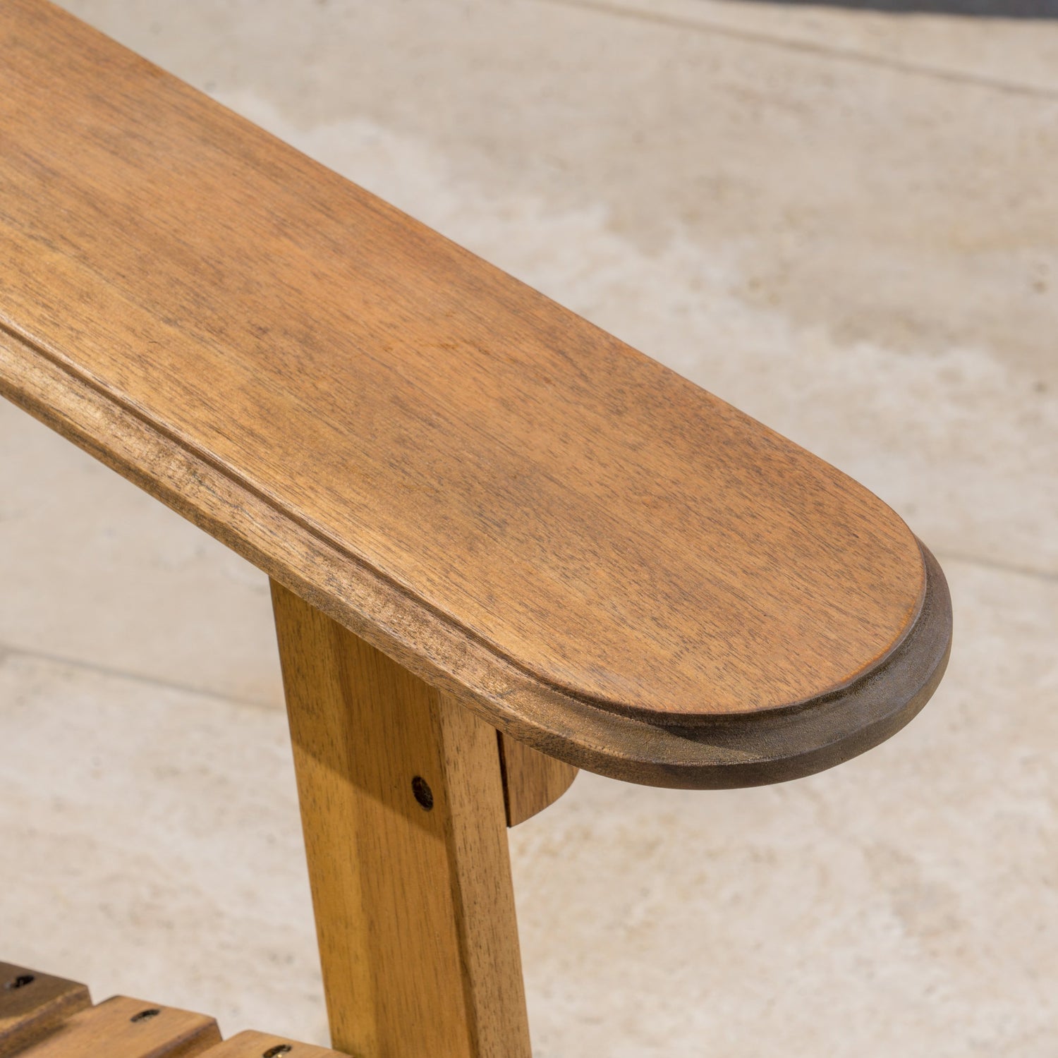- Enjoy lounging outdoors with the Halley's outdoor reclining wood Adirondack chair with footrest. Made with durable Acacia wood, this chair is sure to last you for years to come.