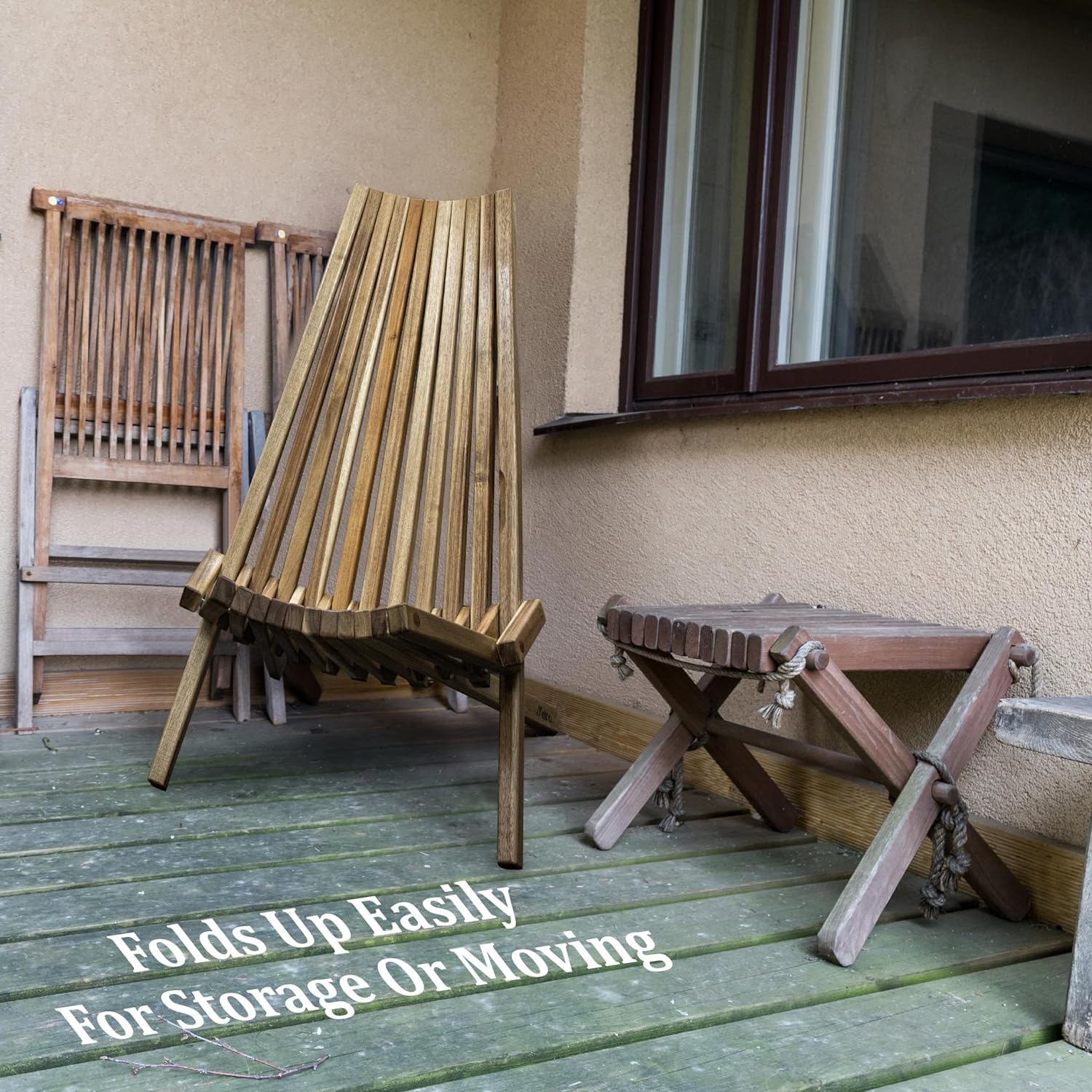 Details: Acacia Wood Folding Wooden Outdoor Chair -Stylish Low Profile Acacia Wood Lounge Chair for the Patio, Porch, Lawn, Garden or Home Furniture