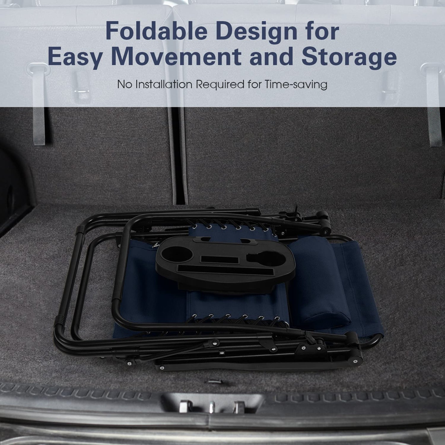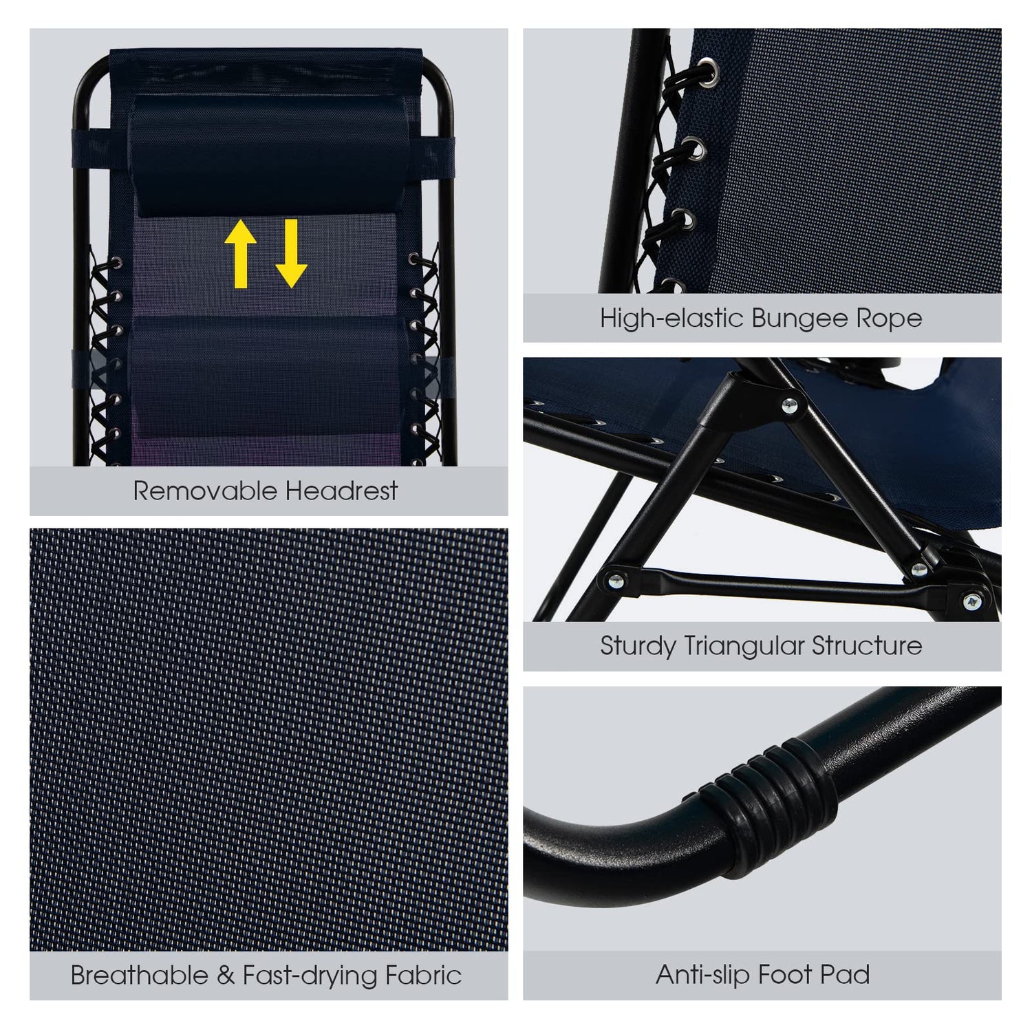 Goplus Zero Gravity Lounge Chairs, 160°Adjustable Folding Recliner w/Pillow and Cup Holder, 350LBS Comfy Outdoor Lounge Chairs for Patio, Lawn, Yard & Camp(Set of 2, Navy)