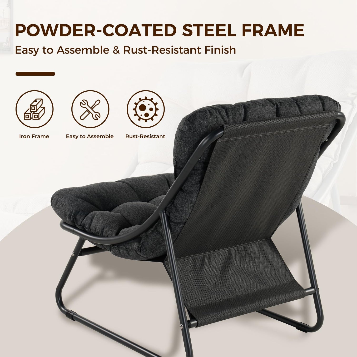 - Strong Construction: The metal outdoor chair and ottoman can each hold up to 350 pounds. The all-steel frame is treated with electrophoresis and powder coating to protect against UV rays and rust. 1000UVH yarn-dyed cushion fabric is fade-resistant and weather-resistant to keep your outdoor patio chair as new in all seasons