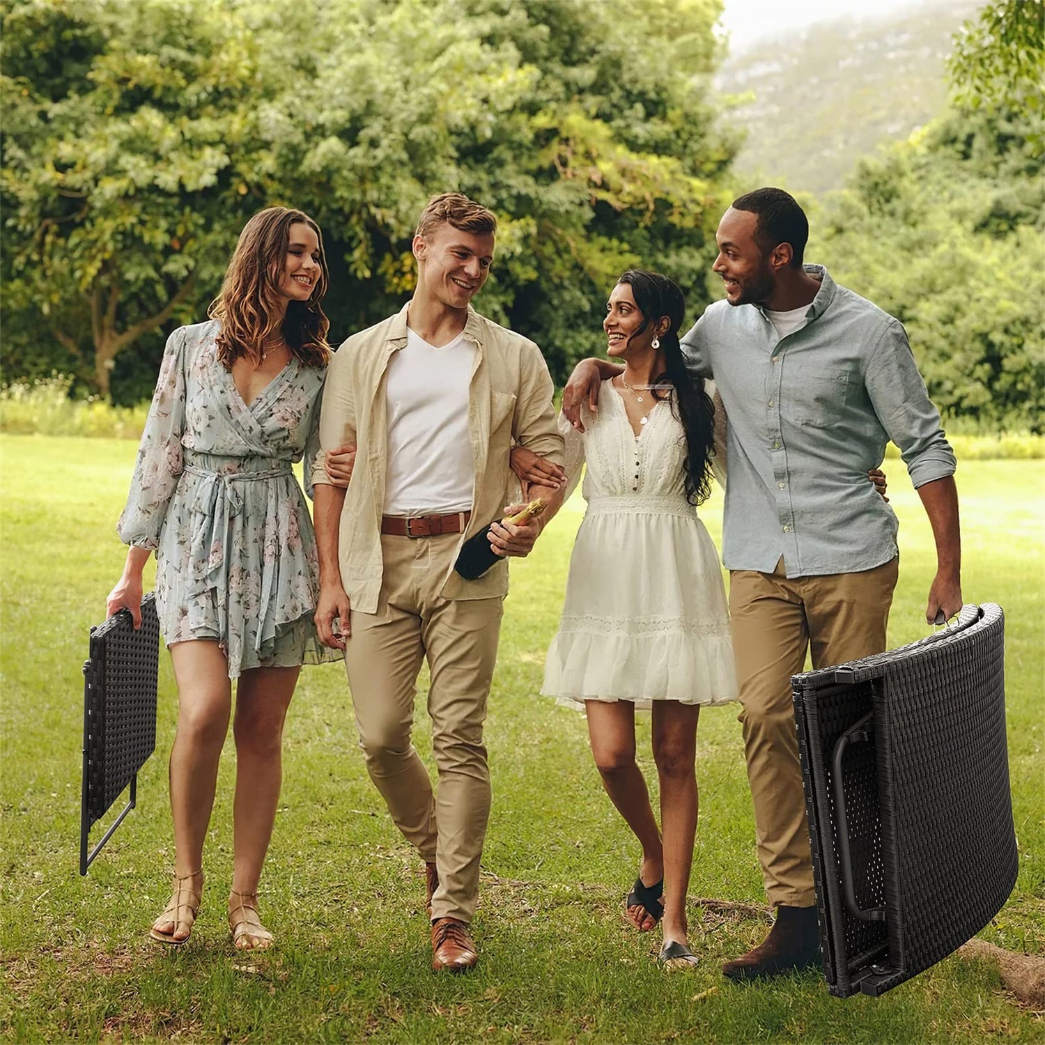 • Foldable Design: The product includes two recliners and a small square table. The recliners and small square table are all foldable. You can put some cold drinks or small cakes on the table. When you have finished using them, you can fold them up and place them in the trunk of the car or lean against the corner of the wall, and then unfold them when you use them. The folding handle and locking system of the recliner also make the movement more convenient and safer.