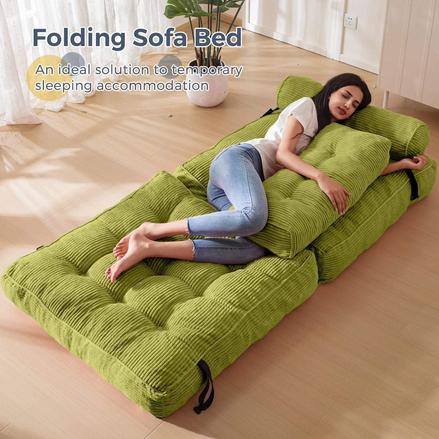 MAXYOYO Folding Sofa Bed, Convertible Sleeper Chair with Pillow Foldable Mattress with Back Support, Portable Fold Out Chair Bed Comfy Floor Sofa Lounge for Living Room Bedroom, Green, Single