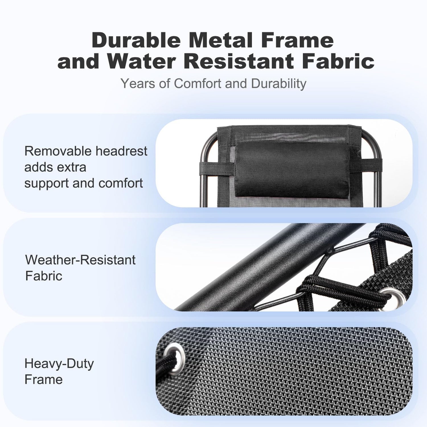 - DURABLE AND LONG-LASTING: With a high weight capacity of 300 pounds and flexible, low-wear textilene fabric, our Lounge Chairs are built to last and provide years of comfortable relaxation.