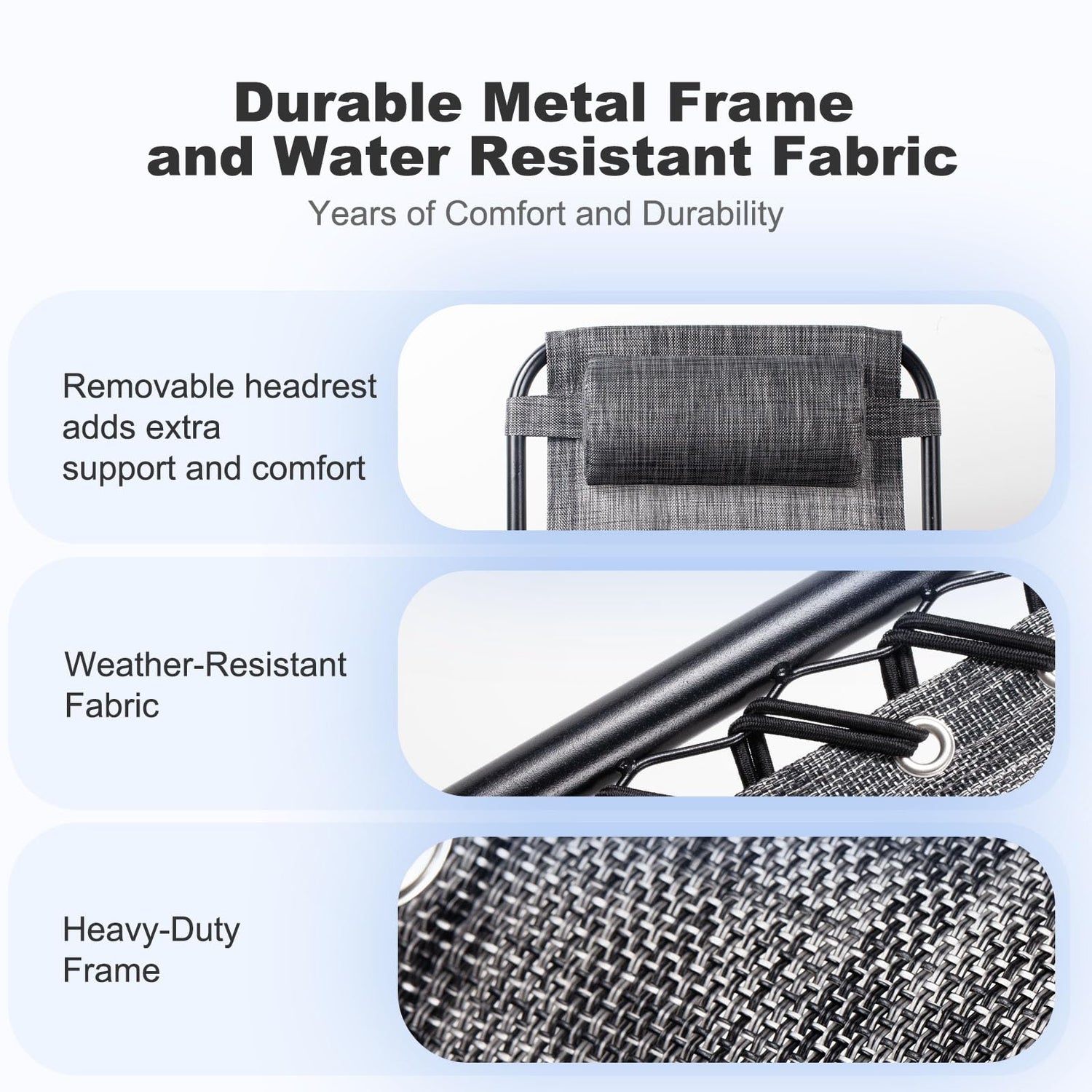 - RELAX IN STYLE: Our Zero Gravity Lounge Chair Recliners are designed to provide the ultimate in comfort and style, with a sleek black steel mesh design that looks great in any outdoor setting.