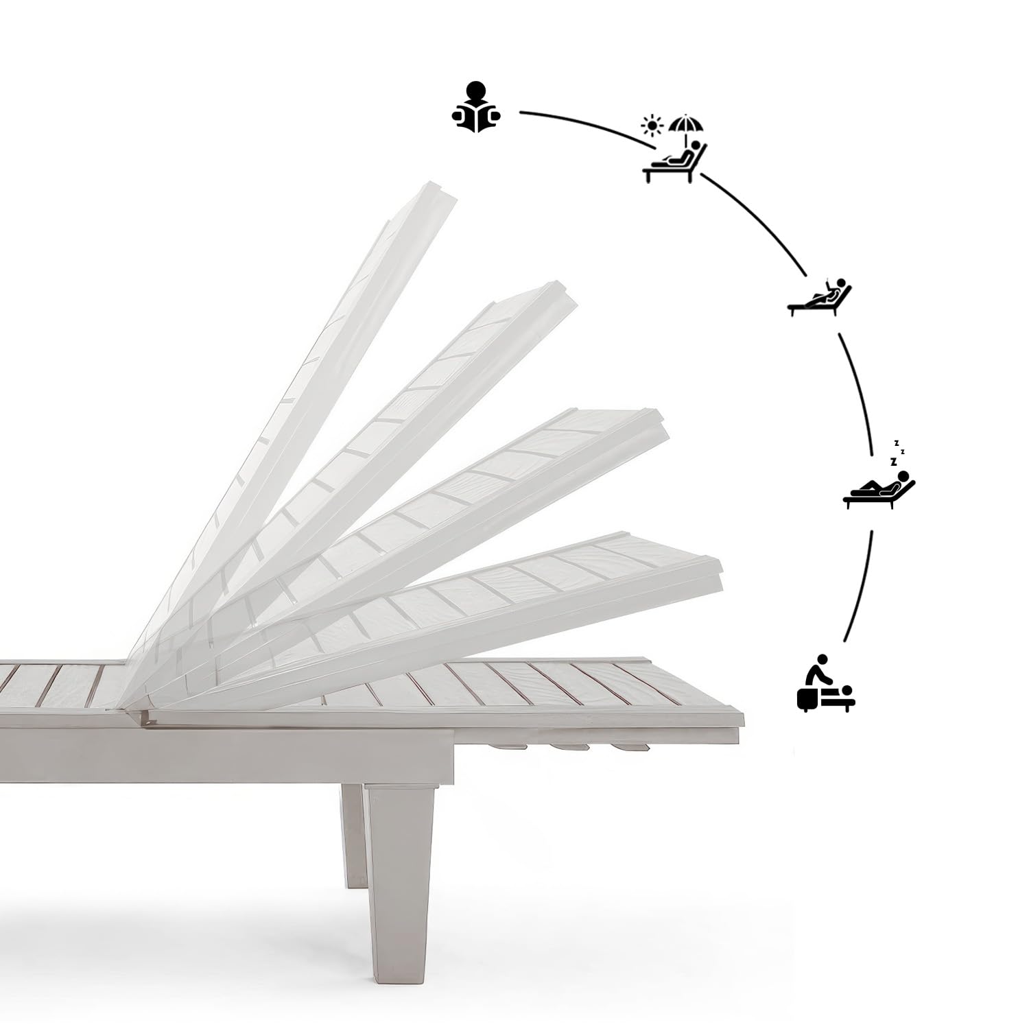 • 5 Position Lounge Chair: With 5 adjustable positions, finding your ideal comfort level on our outdoor chaise lounge chair is a breeze—it even reclines fully flat for afternoon naps.