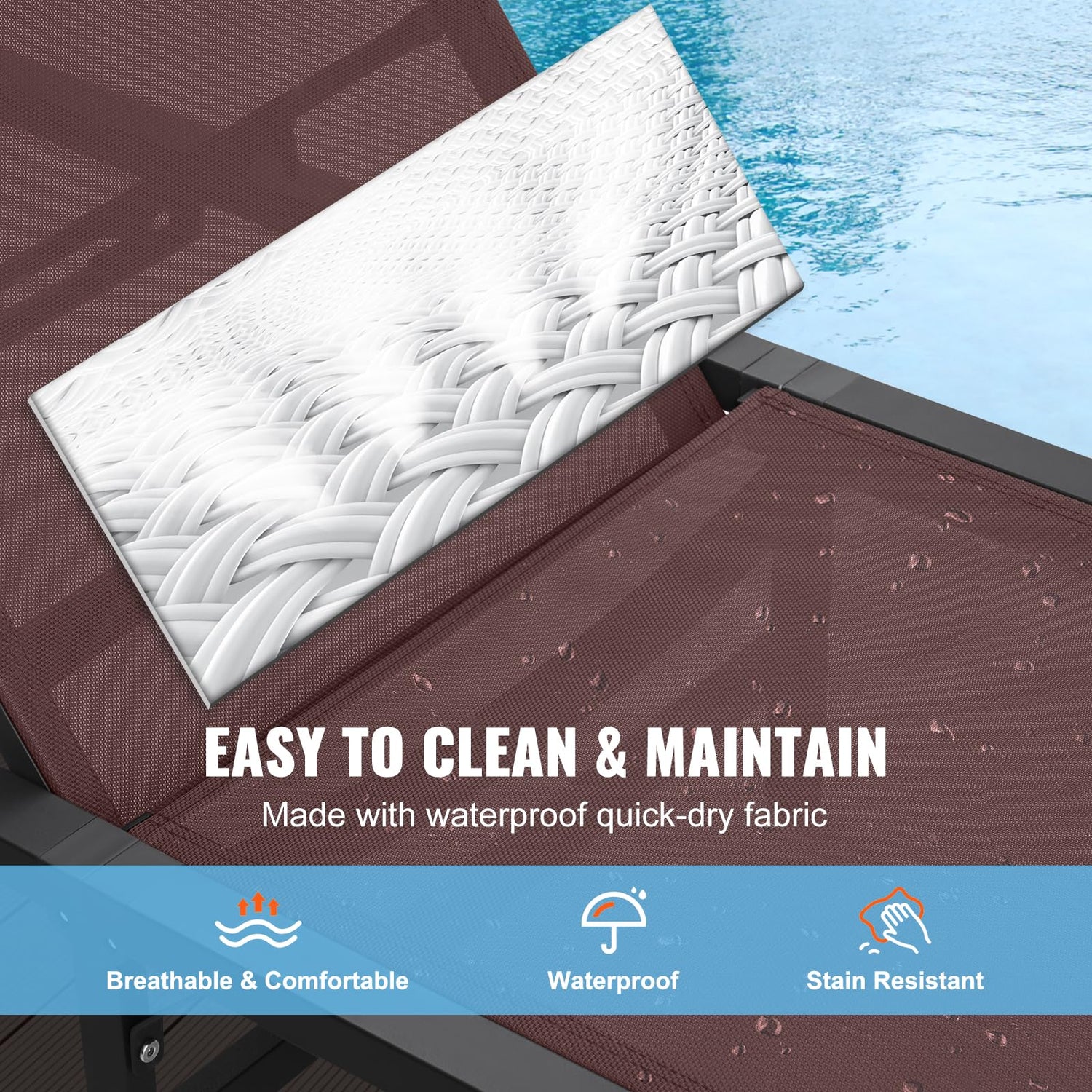 VEVOR 2 Pcs Chaise Lounge Chairs Outdoor, Aluminum Patio Lounge Chair with Adjustable 5-Position, Folding Pool Chairs Recliner and Full Flat Tanning Chair for Patio, Beach, Pool, Brown, 2 pcs