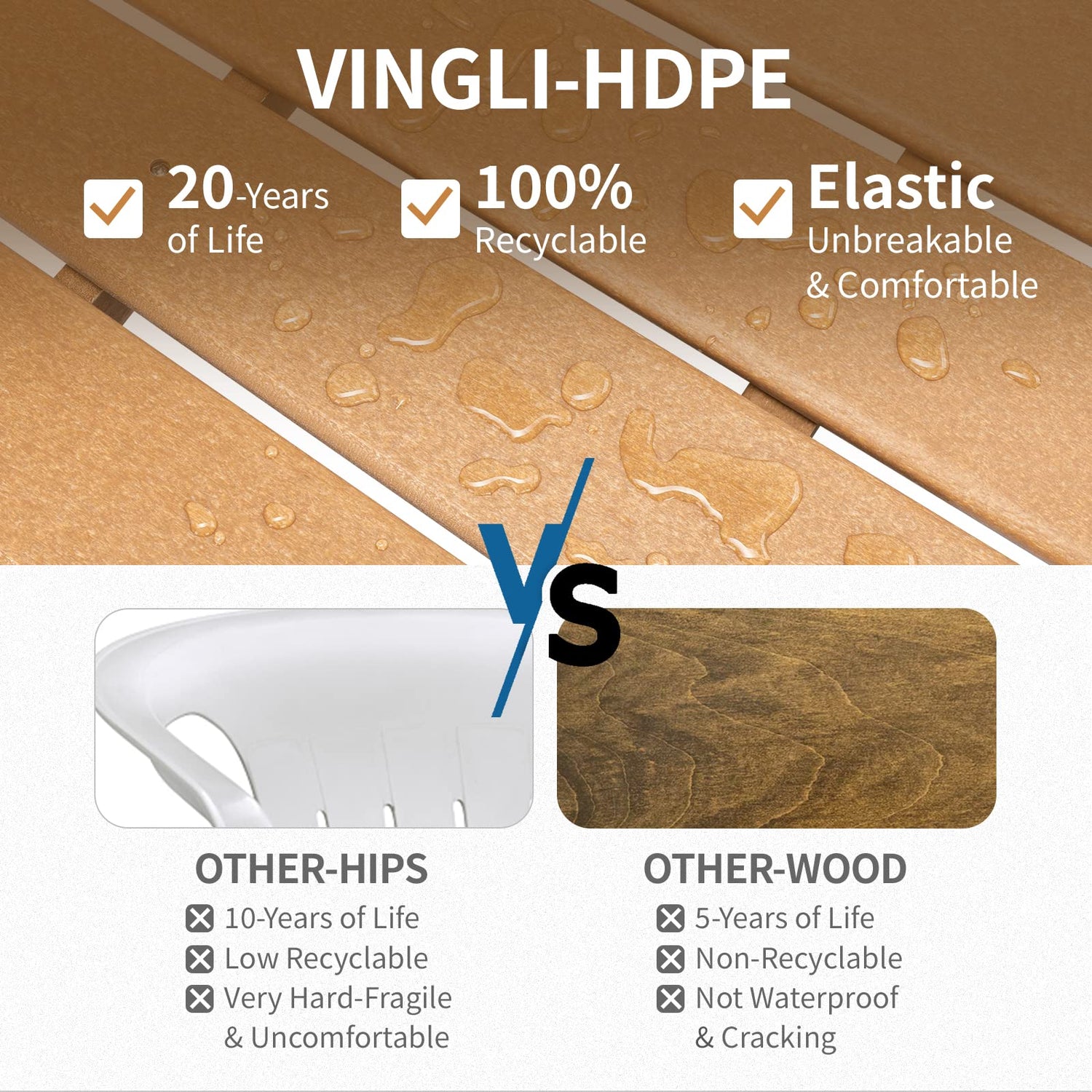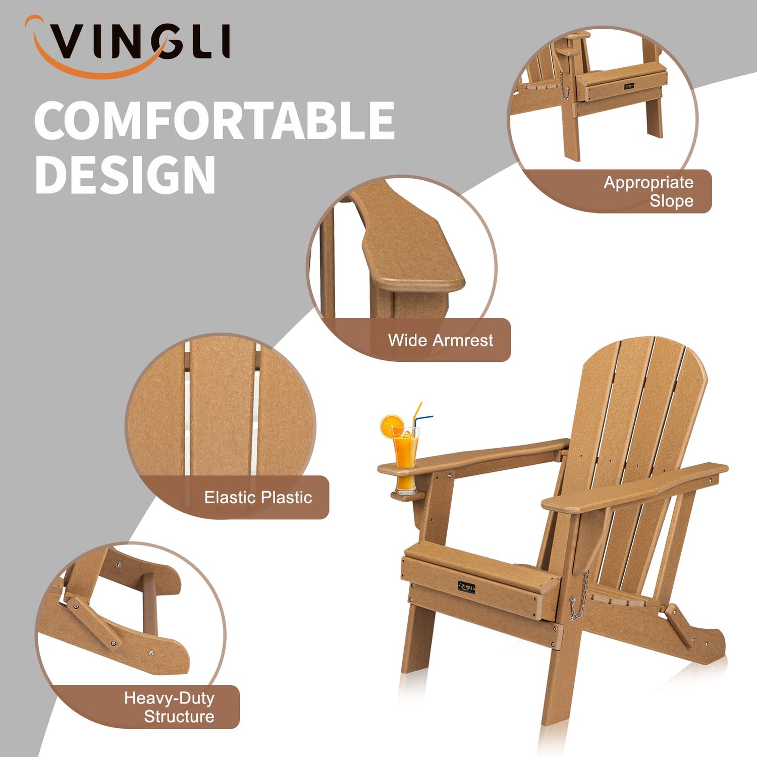 VINGLI Plastic Adirondack Chairs Set of 2, Folding with Cup Holder, Waterproof HDPE Material, Comfortable 380lb Weight Capacity for Outdoor Pool Patio Lounge Chair Lawn Furniture Firepit (Teak)