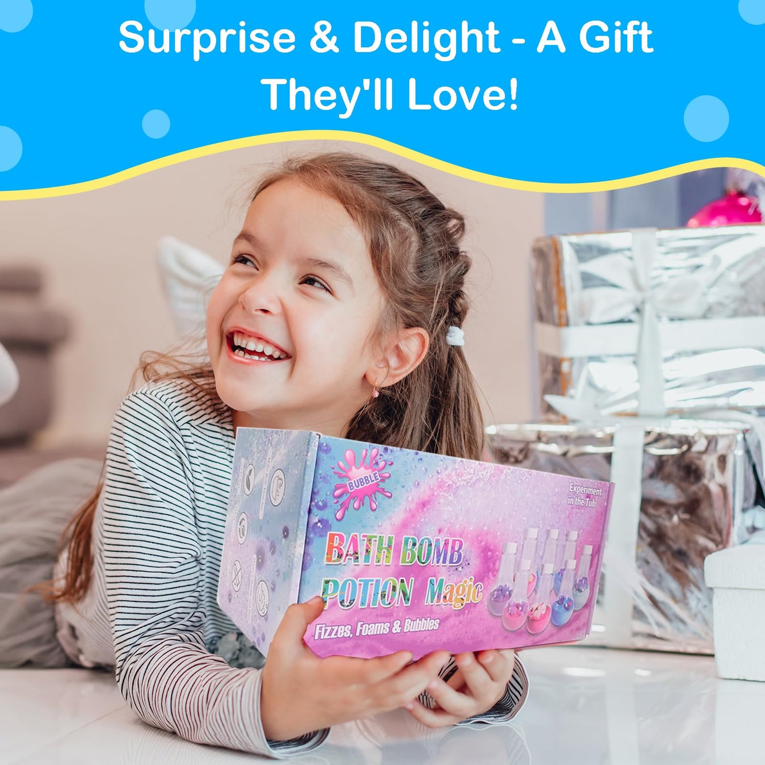 Magic Potion Maker Kit for Kids Ages 4-8 | 8-Pack Bath Toys with Hidden Mini Toys & 2 Refills | STEM Bubble Bath Bomb Set, Fun Educational Bath Time Activity
