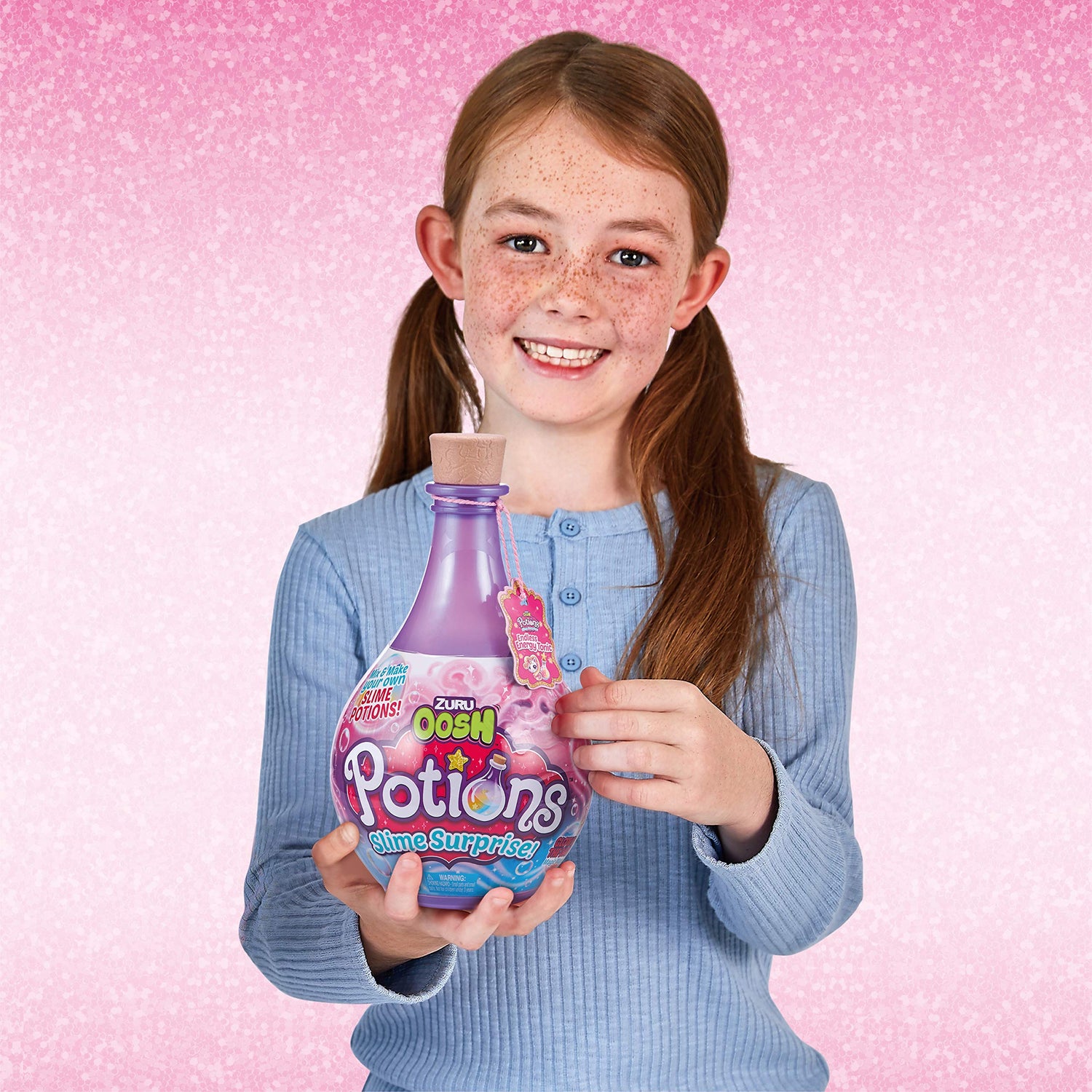 Details: OOSH POTIONS SLIME SURPRISE: From sparkles to slime, there's so much magic to find ! New Potions Slime Surprise from ZURU OOSH adds a dash of magic to DIY slime making. There's 4 different magic potion bottles, each with two surprise potions to create inside- from the BFF's Elixir to the Enchanting Potion, kids can engage their imagination as they follow each magic recipe. Just pop open the sparkly Potion bottle and use the base as a bowl to make each potion with the included glow in the dark mixing wand. Every spell binding potion comes with its own gooey or powder base, three different accessories to add, storage bottles and an easy to follow magic recipe ! Let the magic begin with Potions!