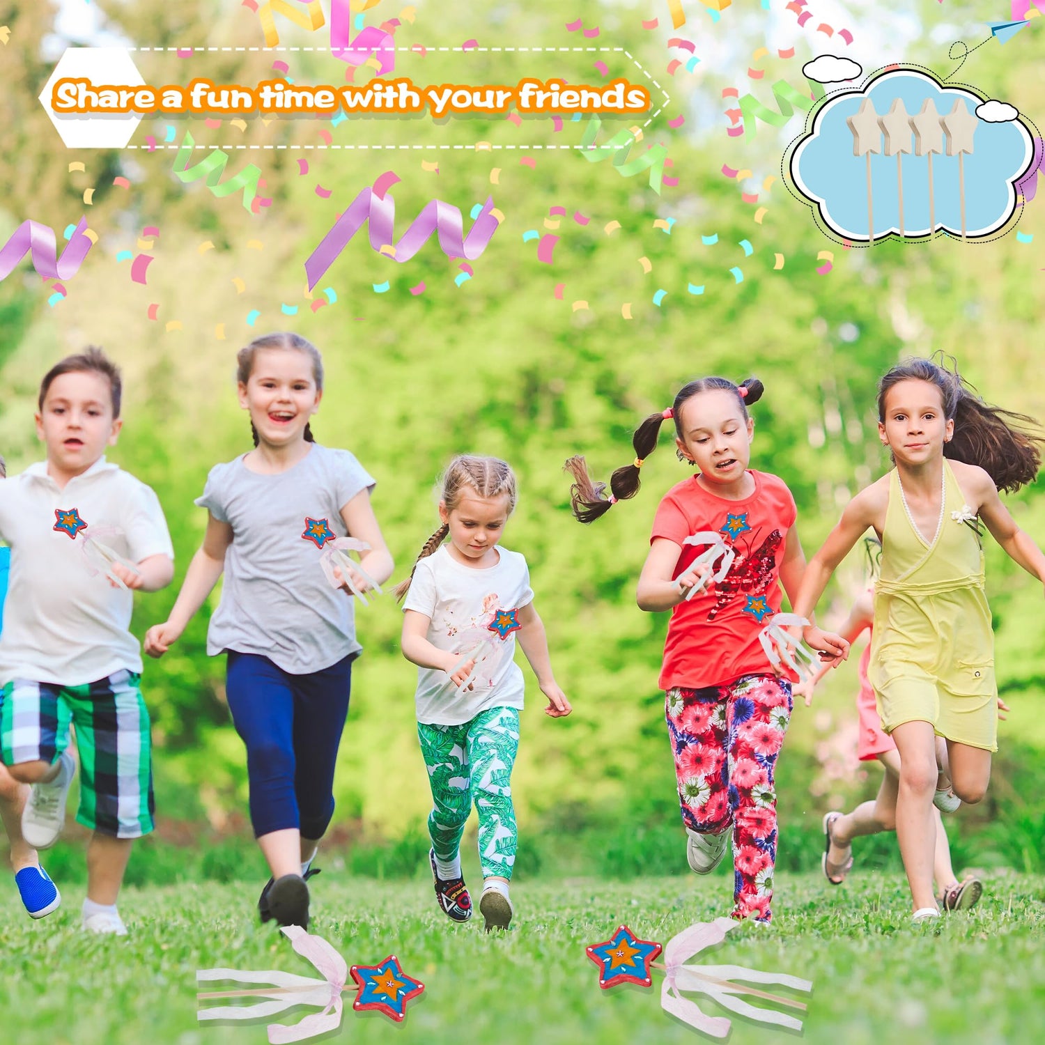 - 【Quality Material】: Our kids 3D fairy wand bulk is made of wood, the gem stickers and painting brushes are made of plastic, and the 12-color paint is made of acrylic. The material is safe and reliable, no odor, the star fairy princess wand has a smooth surface without burrs, comfortable touch, and protects children's delicate skin. Children can make unique shiny wands, making hand-made more interesting