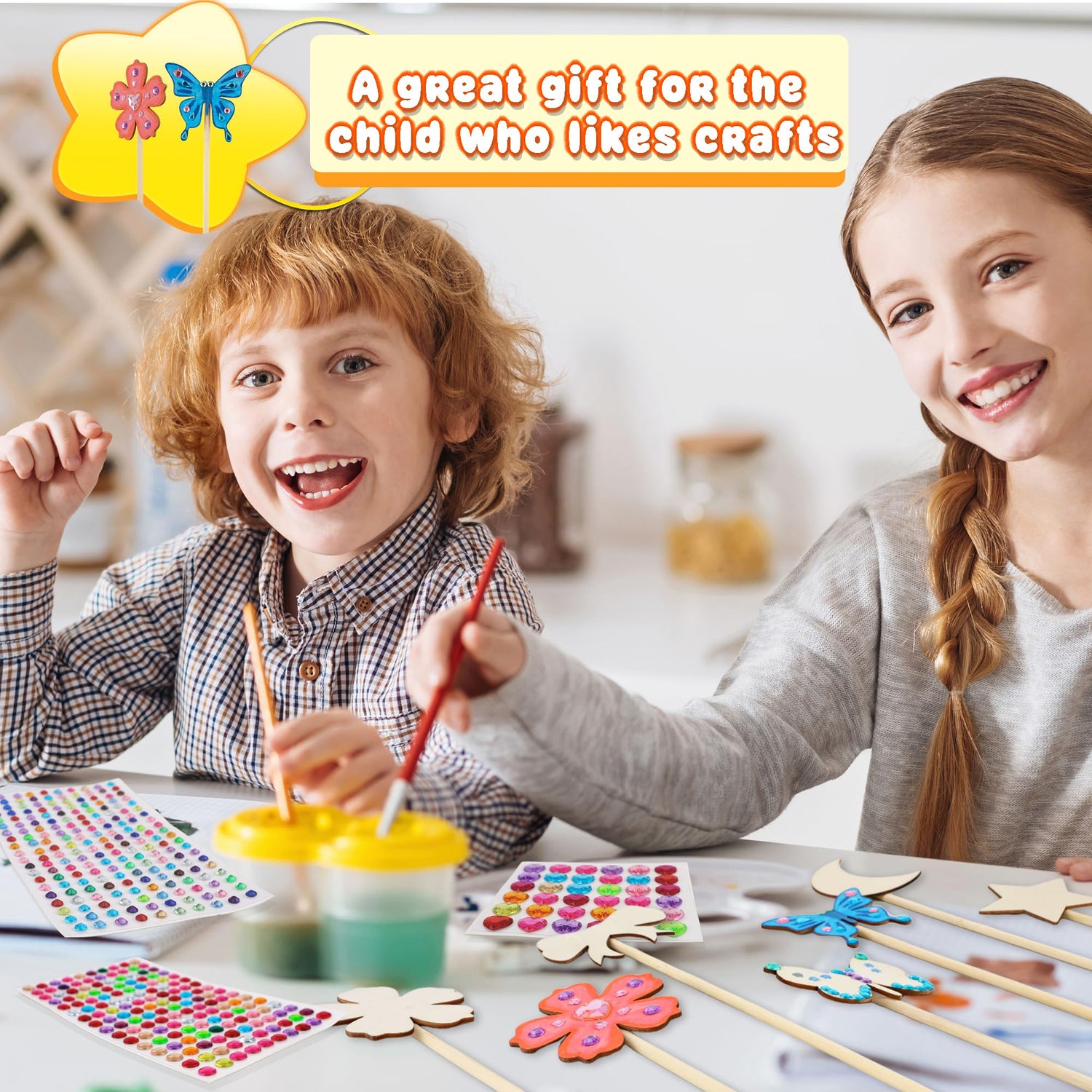 - 【Quality Material】: DIY princess stars wands are made of quality wood materials, with smooth polished surface and no thorns or burrs, ensuring safe use, lightweight and odorless, convenient for children to write and draw on them, and the gemstone stickers are made of acrylic material with bright and translucent colors, which looks very special when decorated on the wooden sticks