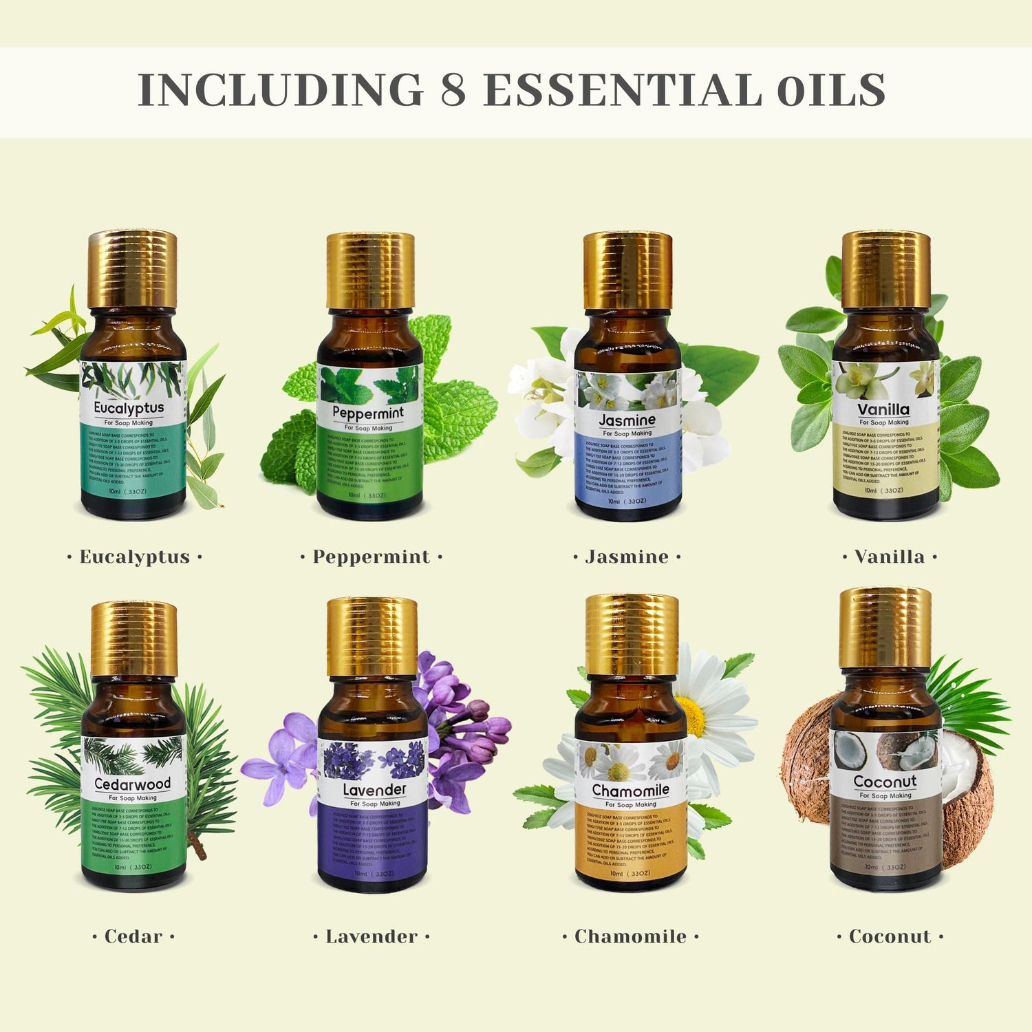 - Making Handmade & Harmless Soap: The kit use 100% pure essential oils, food grade dyes and natural dried flowers. Incorporate your favorite essential oil scents and colors into your family's soaps while avoiding all the unnecessary ingredients