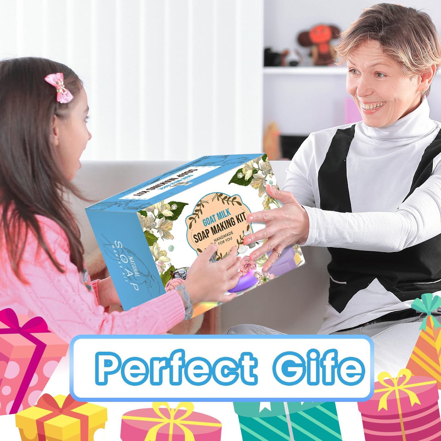 PIUH Goat Milk Soap Making Kit with Soap Melter for Adults, DIY Soap Making Supplies Kit with Natural Goats Milk Soap Base, Soap Melting Pot and Complete Supplies for Making Soaps, Craft Kit for Gift