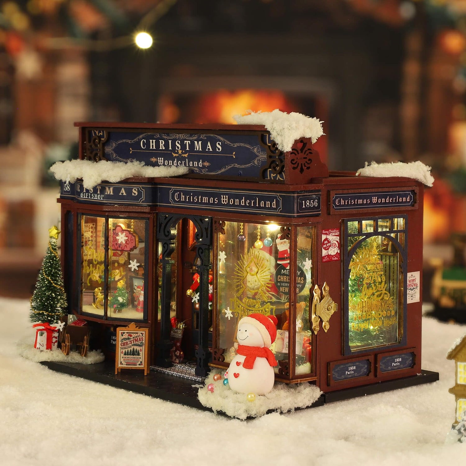 fifijoy Christmas Miniature Dollhouse Kit, DIY Dollhouse Miniature House Kit for Adults, Tiny House Kits Mini Model Building Sets with Music (Christmas Wonderland)
