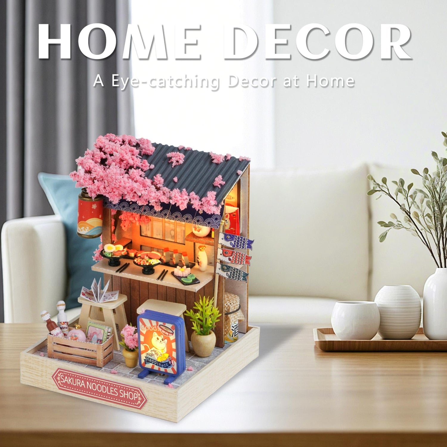 Kisoy Dollhouse Miniature with Furniture Kit, DIY 3D Wooden DIY House Kit with Dust Cover, Handmade Tiny House Toys for Teens Adults Gift (Sakura Noodles Shop)