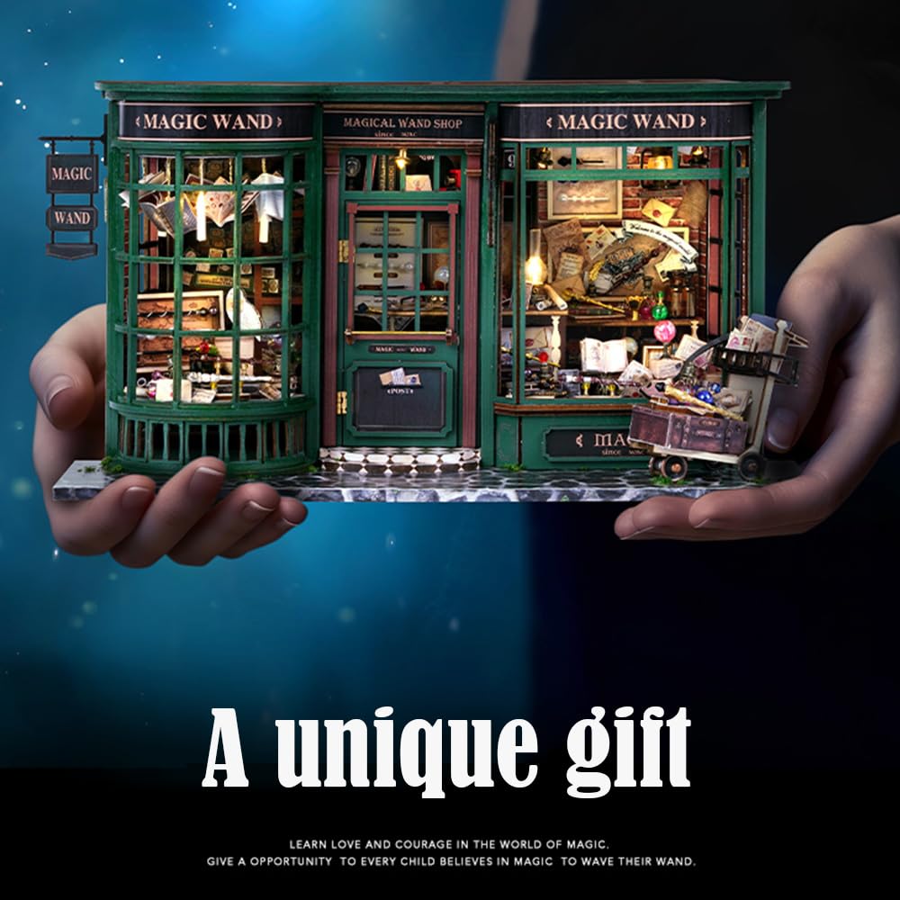 Lannso DIY Dollhouse Miniature Kit, Doll House Kit with Dust Proof Cover, Magic Wand Shop, Mini Handmade Wooden Dollhouse Toys for Adult Gift(F32)