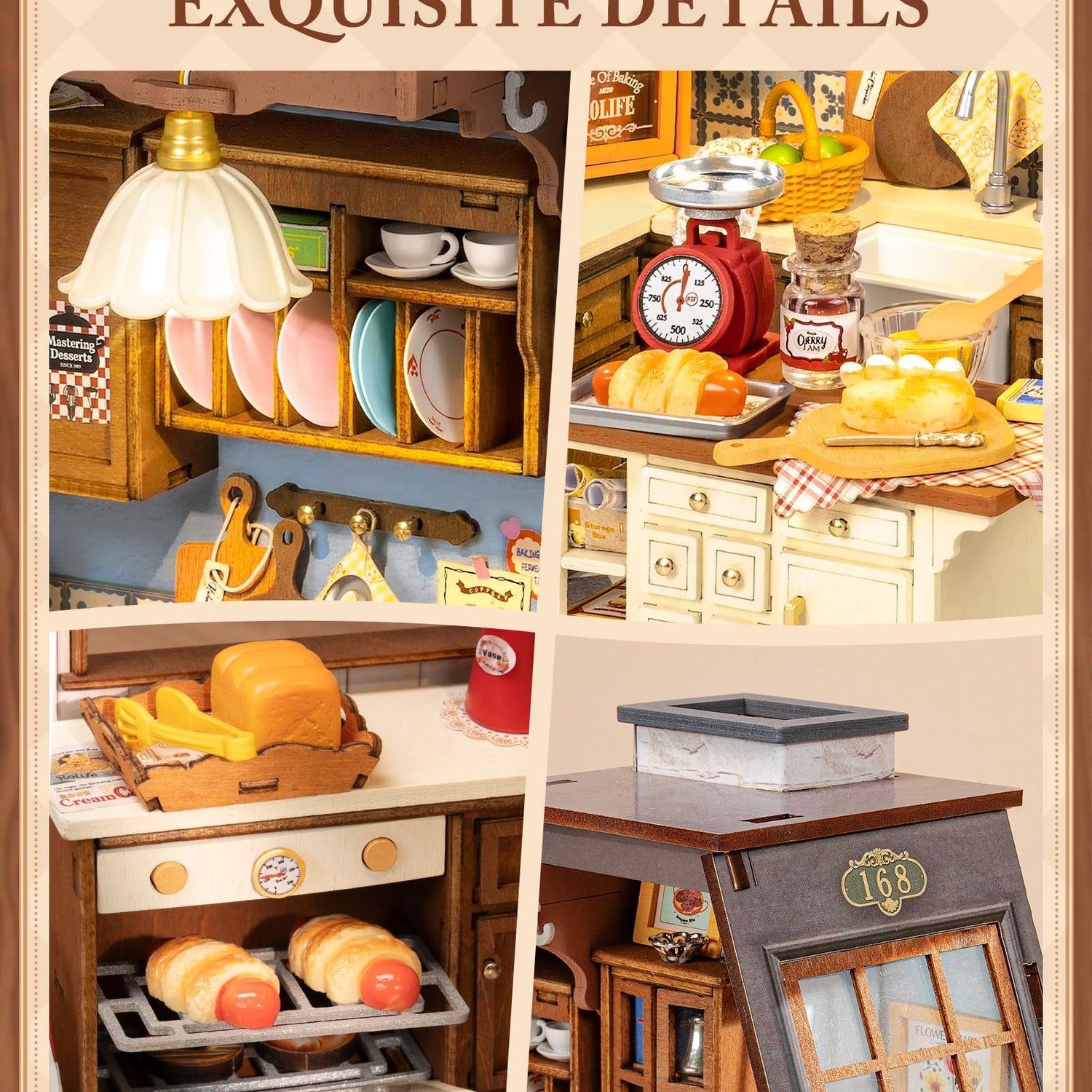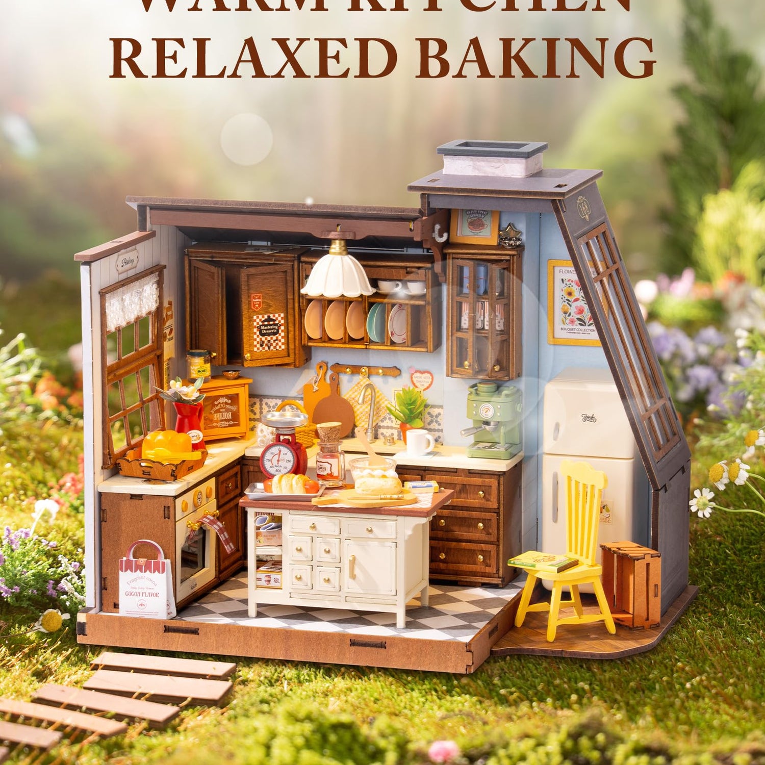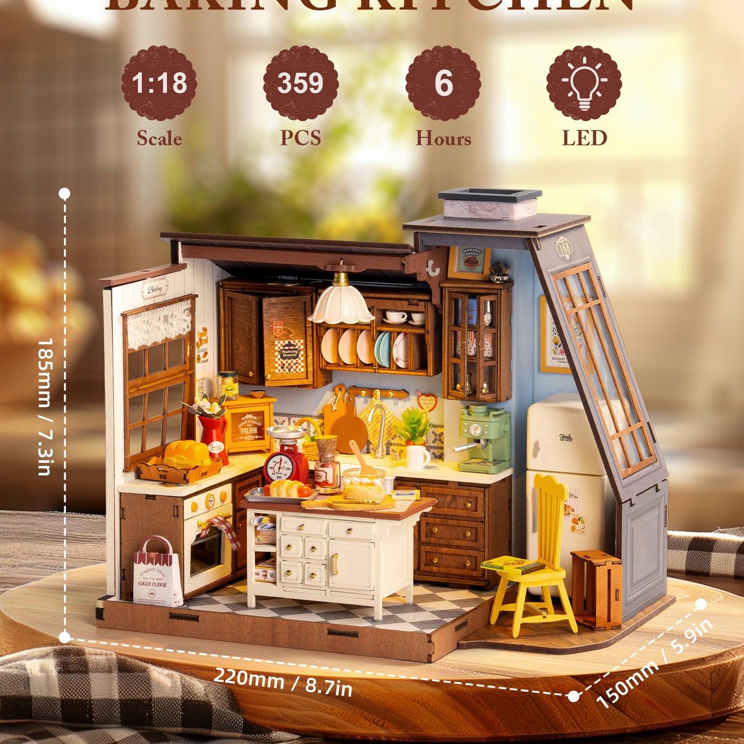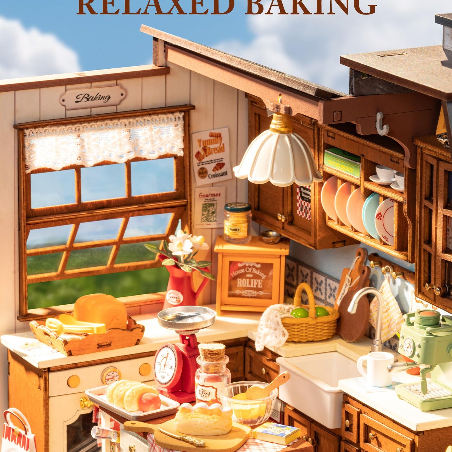 ROBOTIME DIY Miniature House Kit Dollhouse Kit for Adults Mini Tiny House Kit with Furniture Building Model Kit Crafts Creative Gift for Boys Girls (Baking Kitchen)