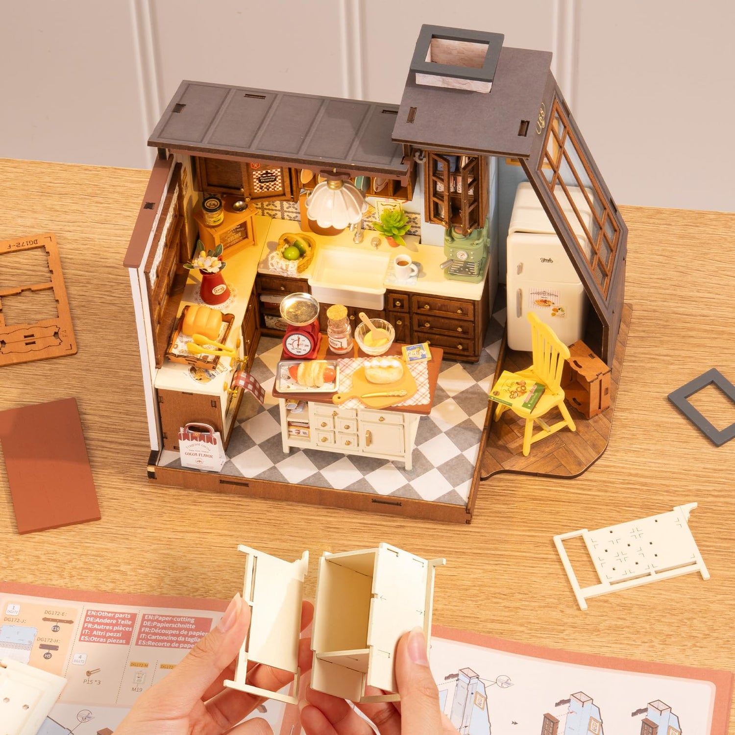 - 【Fun DIY Assembly】 With its snap-together design, no glue is needed for assembly (takes about 6 hours). As you piece together every delightful kitchen detail, the moment the LED lights turn on, you'll feel an immense sense of accomplishment.