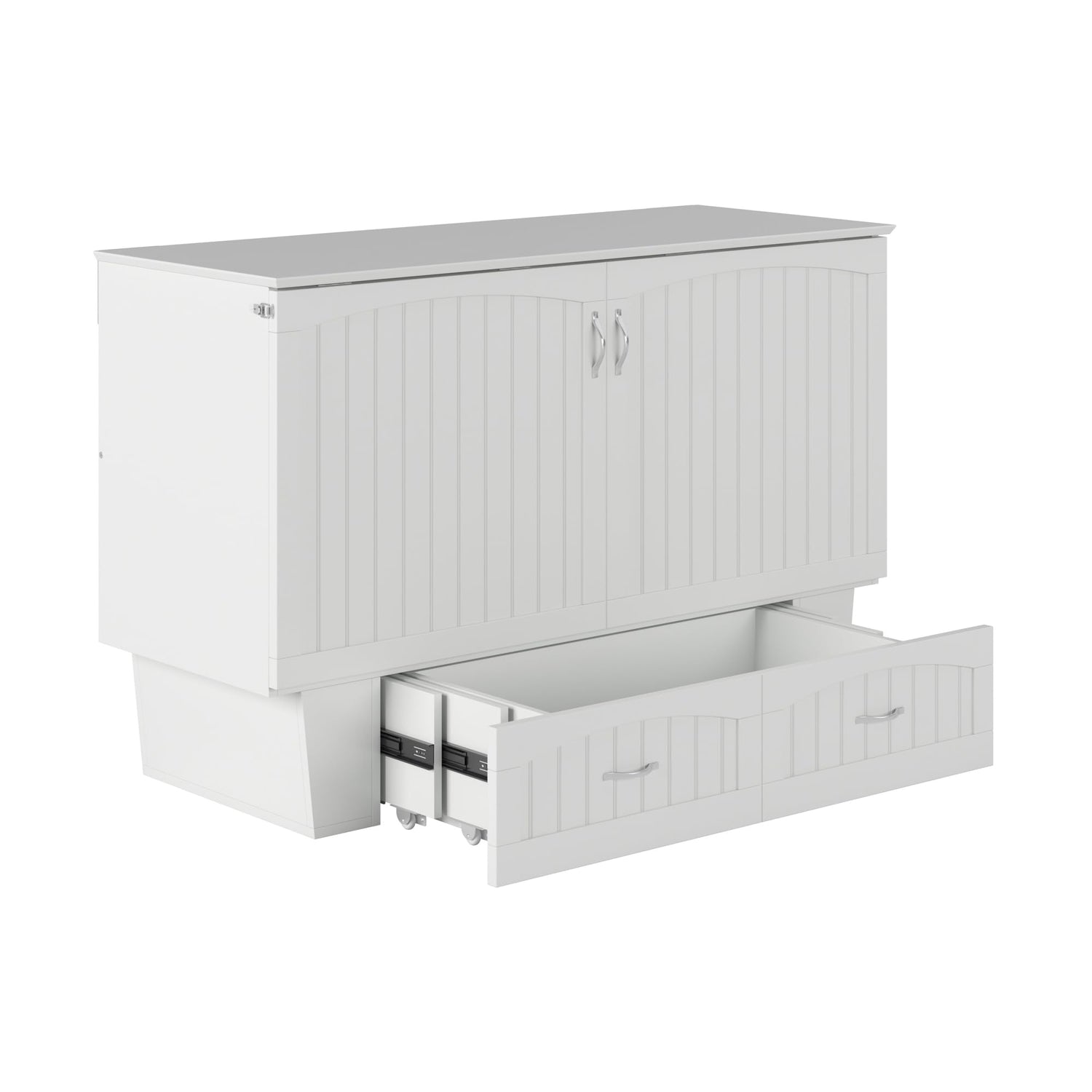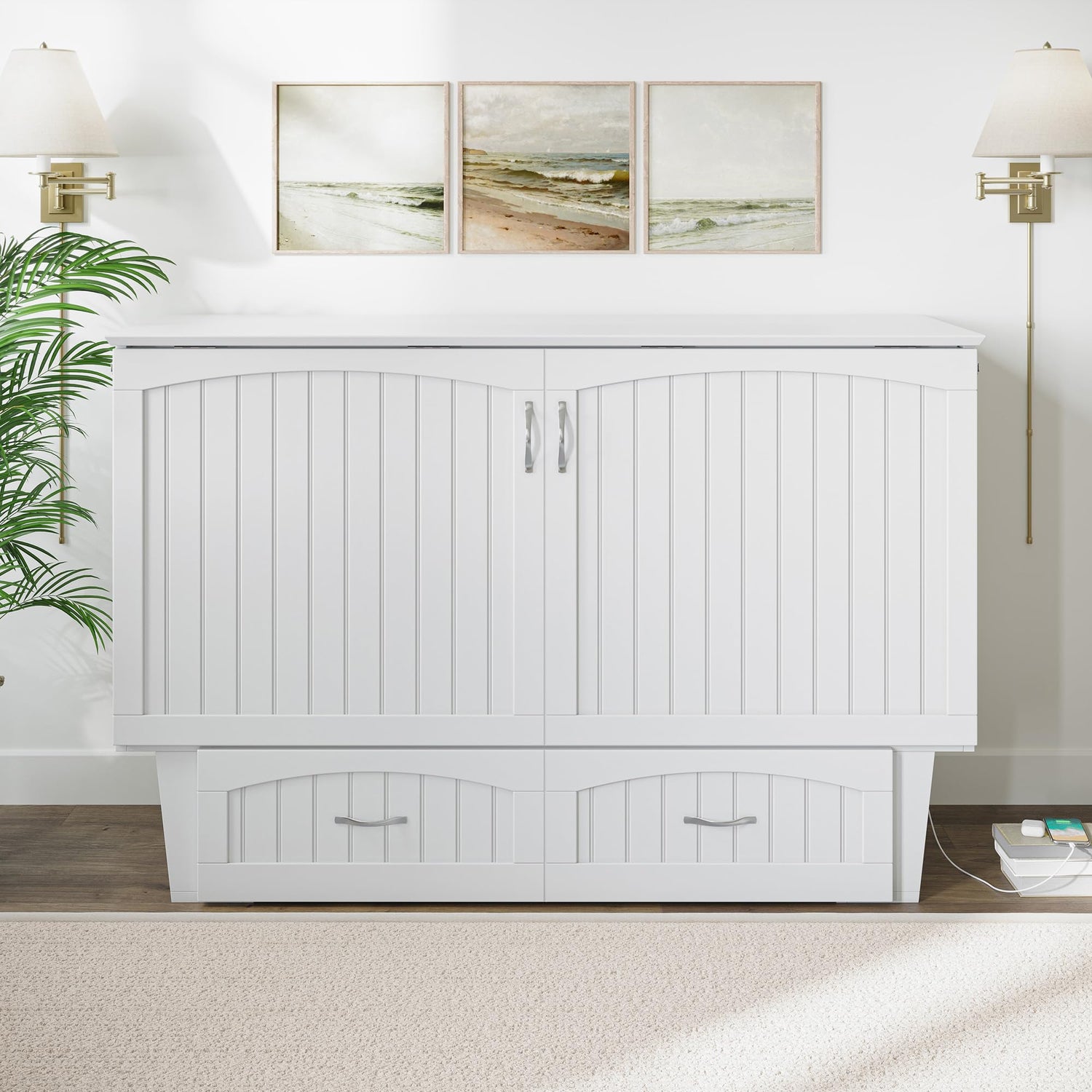 AFI, Nantucket Queen Murphy Bed Chest with Mattress, Storage Drawer and Built-In USB Charger, White