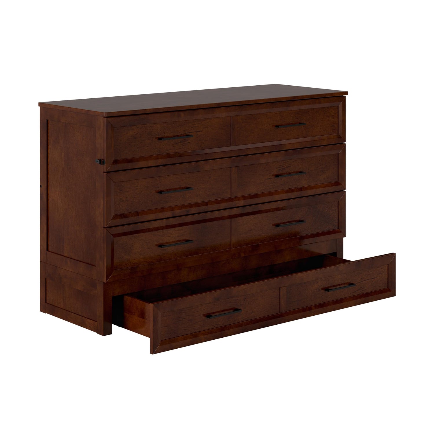 AFI, Tucson Queen Wood Murphy Bed Chest with 6" Mattress, Storage Drawer & Built-in USB Charger, Walnut