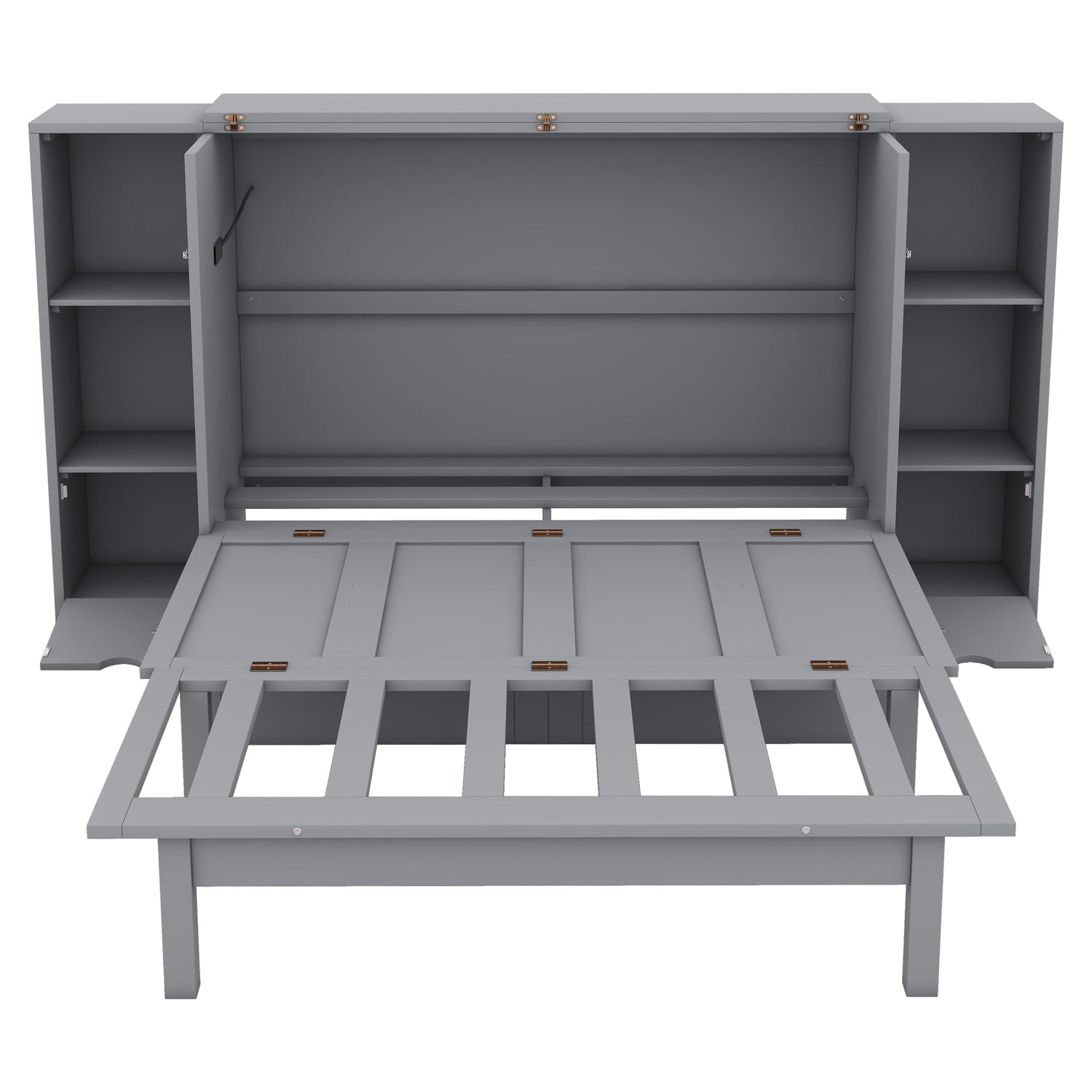 Ball & Cast Full Size Murphy Bed,Cabinet Hideaway Bed with Shelves and Drawers,Wood Wall Bed can be Folded w/USB Ports,Easy Assembly,Platform Bedframe for Kids Bedroom,Student Dorms,Gray