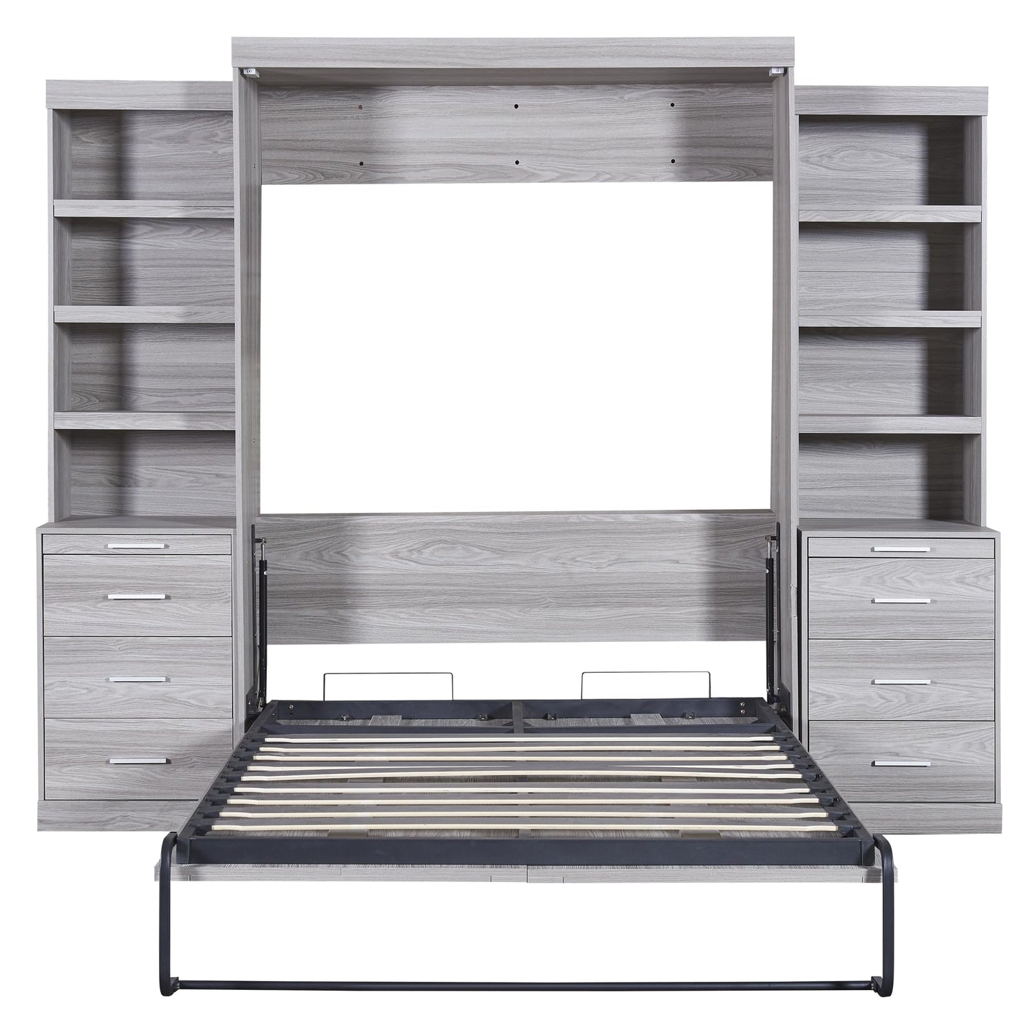 Ball & Cast Full Size Murphy Bed with Storage Shelves and Drawers,Easy Fold Wood Wall Bed, Space-Saving Murphy Bed Cabinet for Guest Room Home Office,Gray