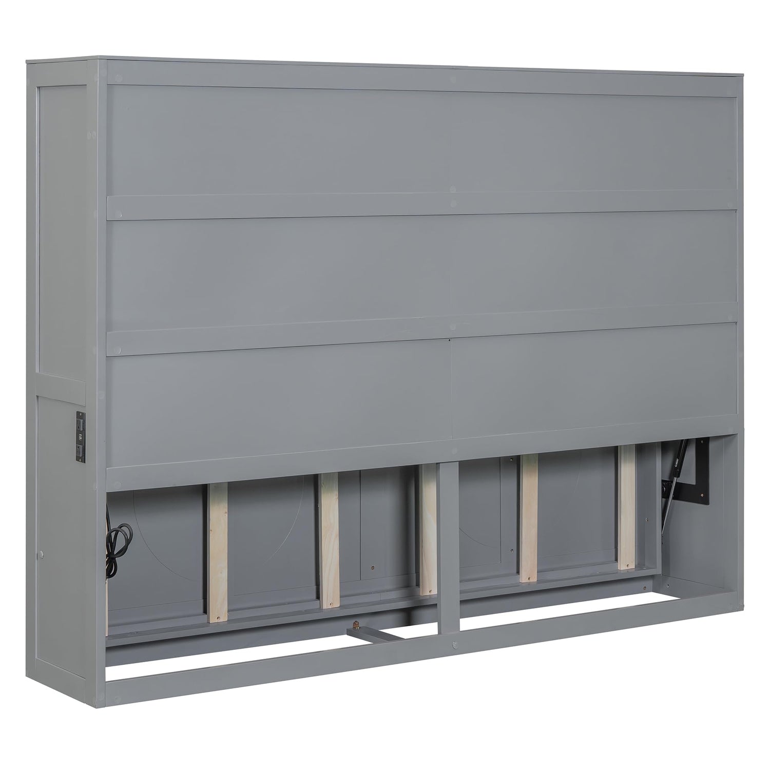 Ball & Cast Murphy Bed Full Size,Wall Beds with Charging Station and Storage Top,Slat Support,Wood Hideaway Cabinet Bedframe w/Leg,can be Folded,Space-Saving,for Small Room,Dorms,Gray