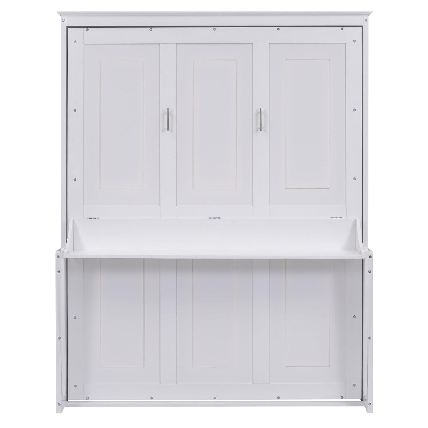Ball & Cast Murphy Bed Queen Size,Murphy Bed Cabinet W/Shelf,Wood Hidden Wall Bed W/Desk,Hideaway Bed Frame for Guest Room,Bedroom,Living Room,White
