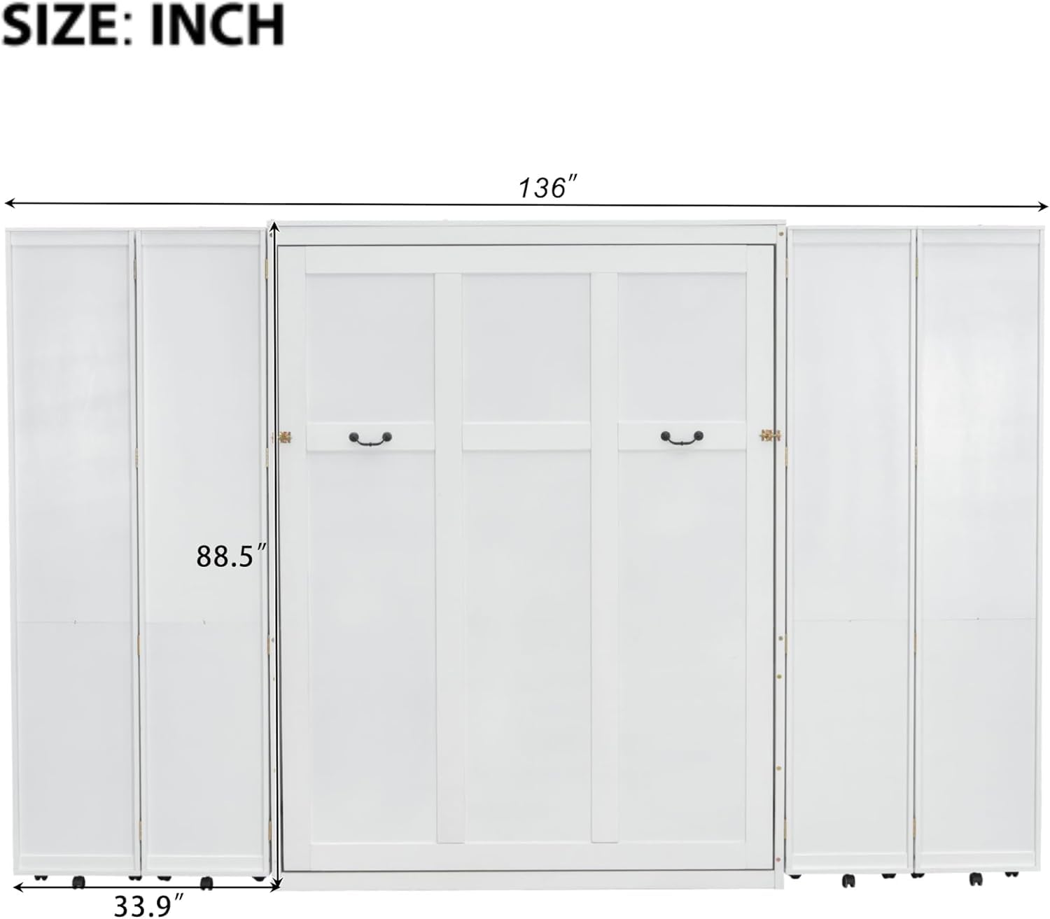- [Dimensions & Assembly] 136"L x 84.6"W x 88.5"H(As a bed) 136"L x 19.8"W x 88.5"H(As a cabinet) Mattress not included. Some assembly is required, although we have provided clear instructions and tools.Mattress not included.