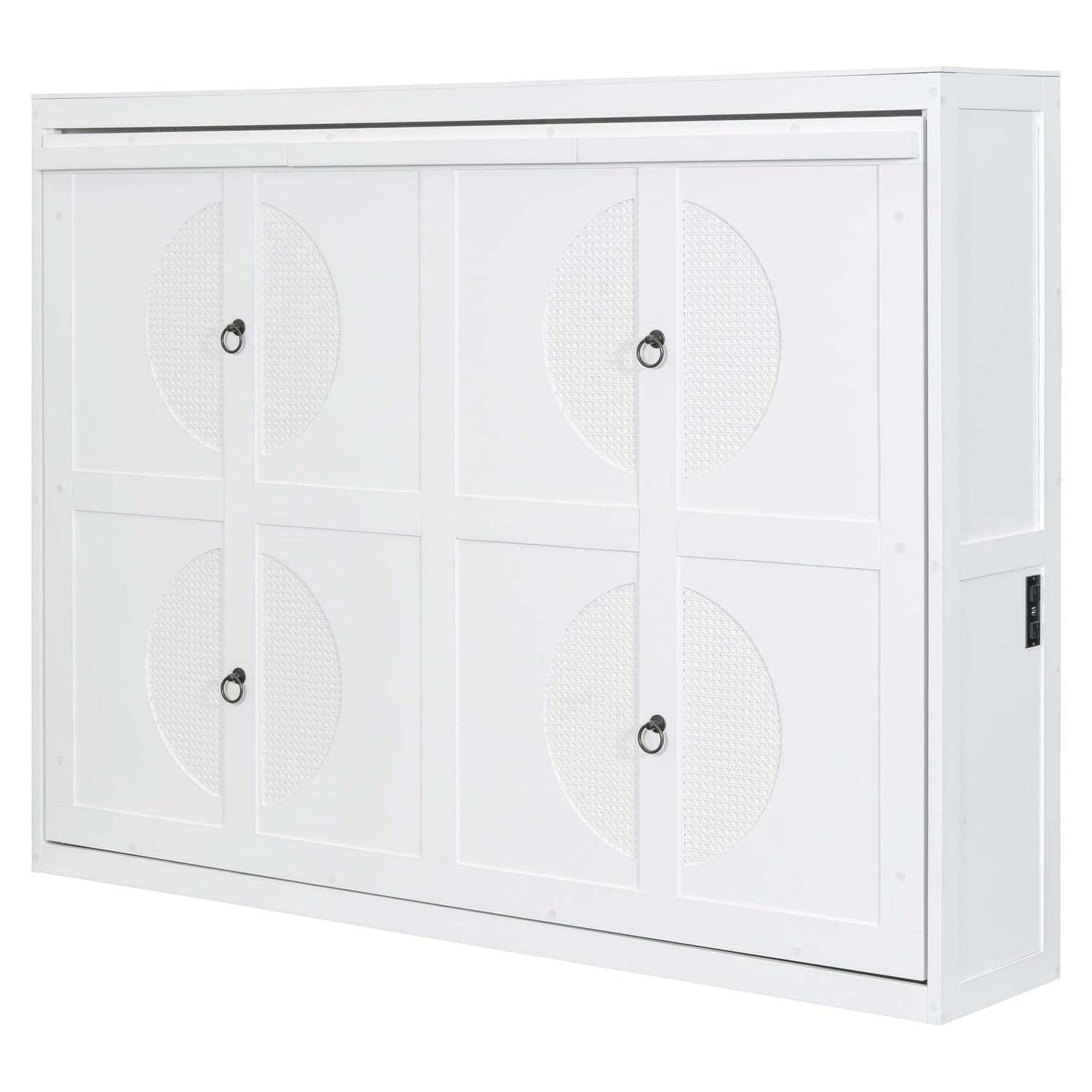 Harper & Bright Designs Full Size Murphy Bed Frame with Charging Station, Wooden Murphy Cabinet Bed, Space-Saving for Living Room, Guest Room, White