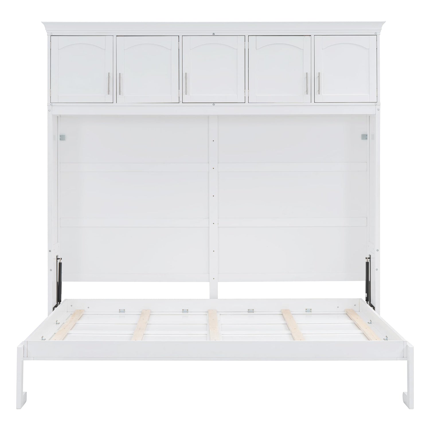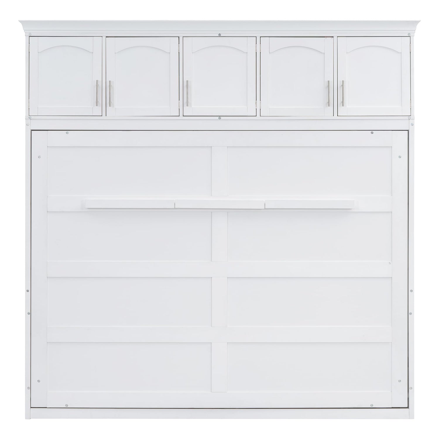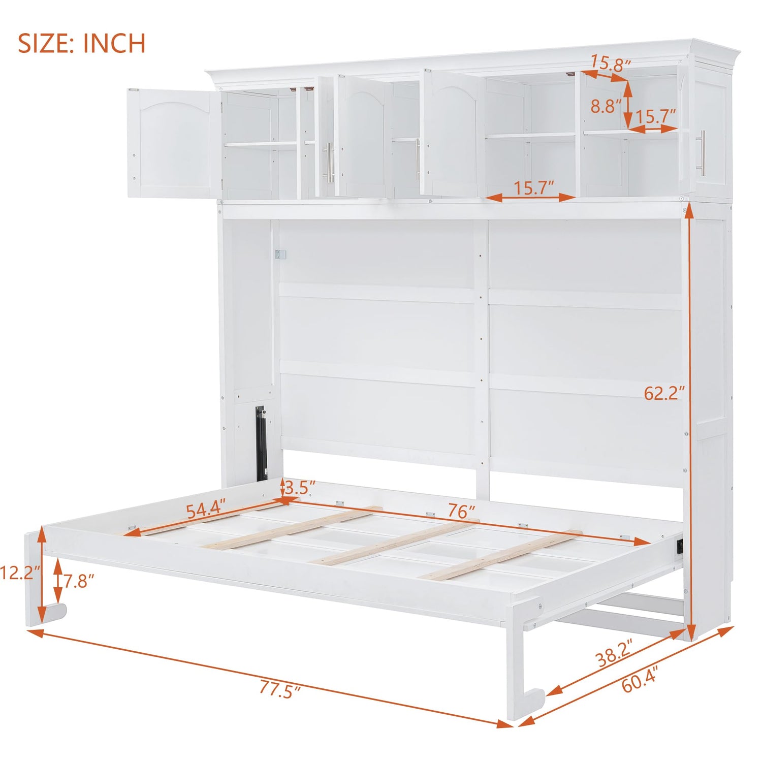 Harper & Bright Designs Full Size Murphy Bed with Top Cabinets,Cabinet Full Bed with Storage,Wooden Foldable Wall Bed Frame for Home Office Studio, White