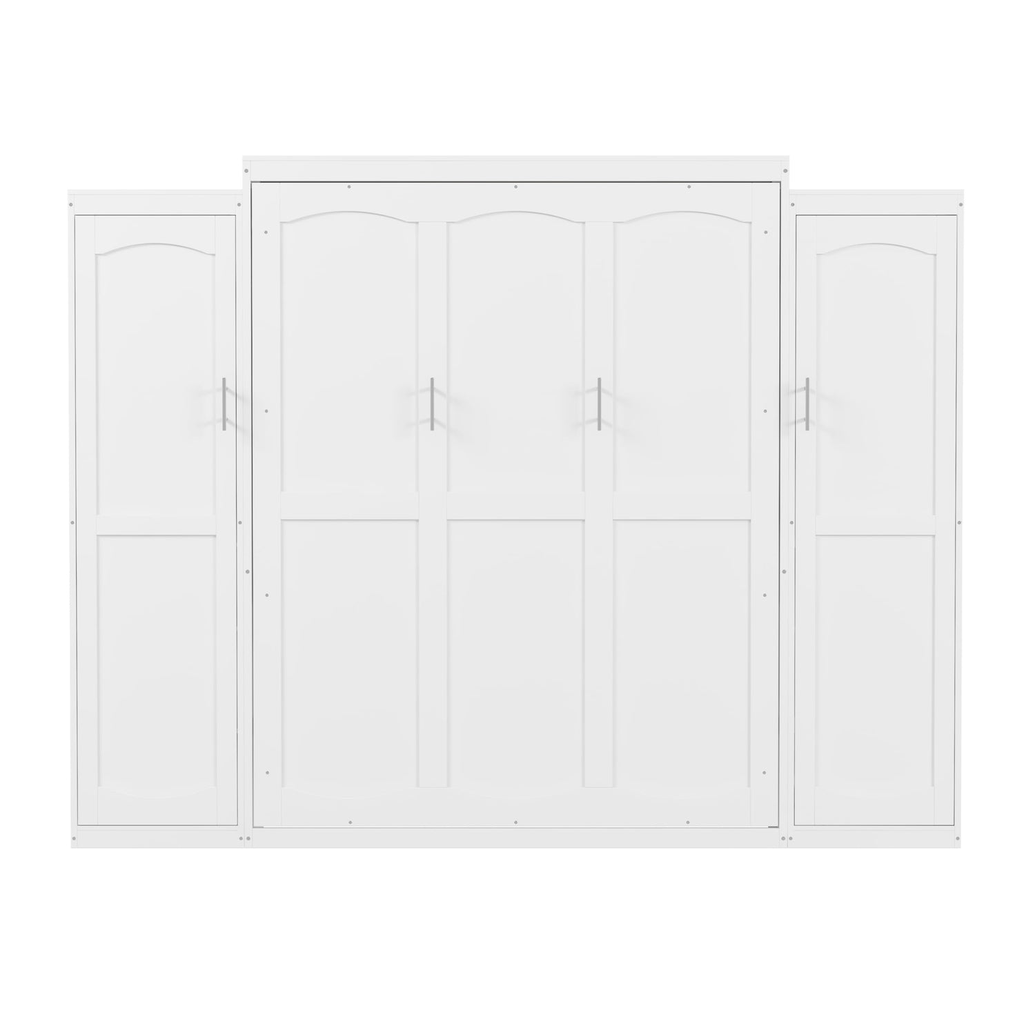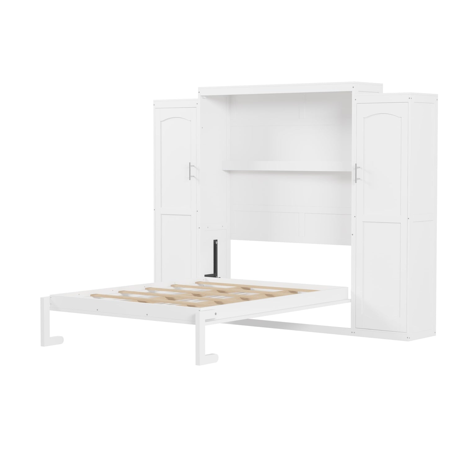 Harper & Bright Designs Full Size Murphy Bed, Wood Full Wall Bed with Two Closets and Storage Shelf, Multifunctional Foldable Platform Bed Frame for Guest-Room/Bedroom, White