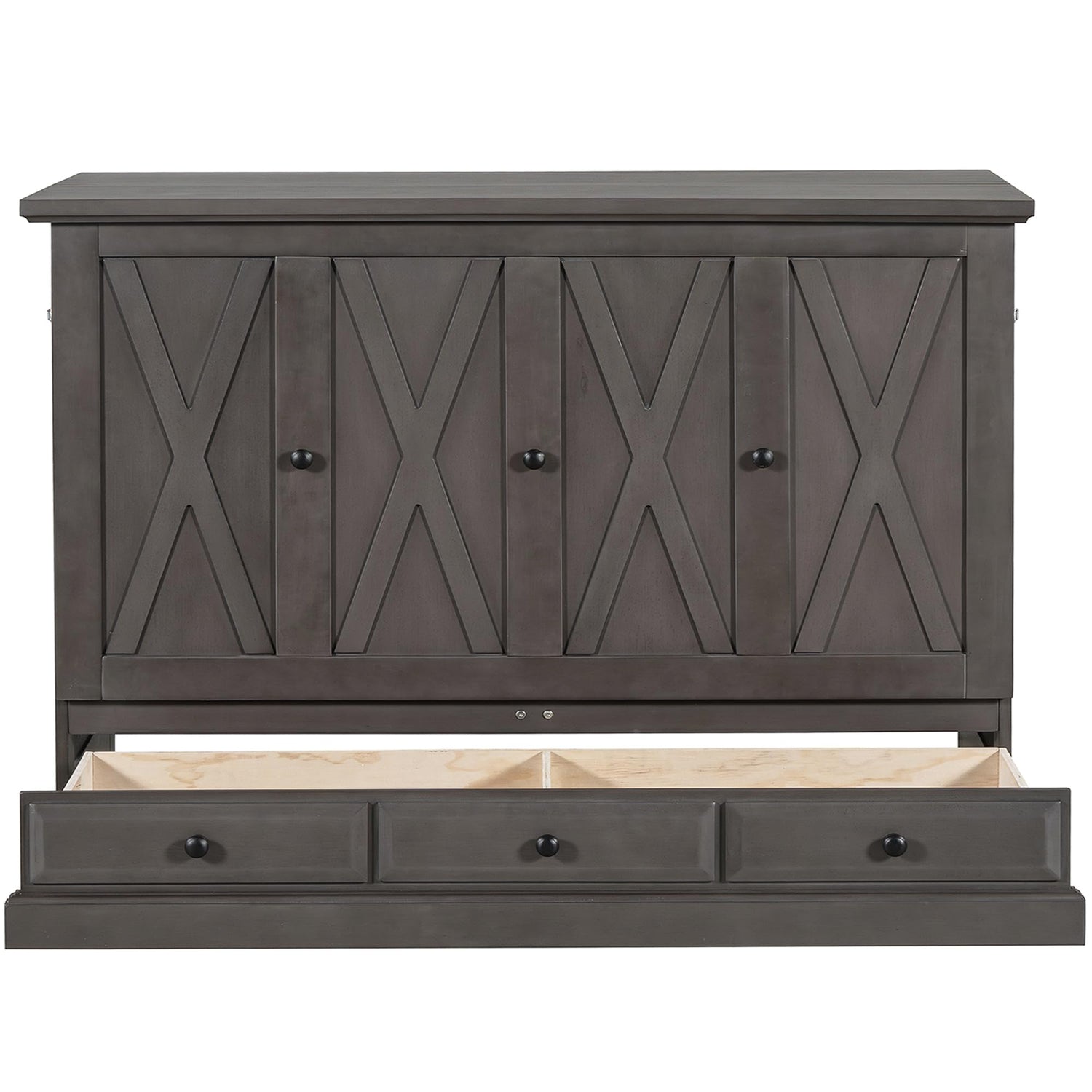 - [Multipurpose Murphy Bed Cabinet] The Murphy bed is housed in a beautiful cabinet with a large drawer and an electrical outlet, making it a versatile piece that doubles as a TV stand, or convenient bed for overnight guests.