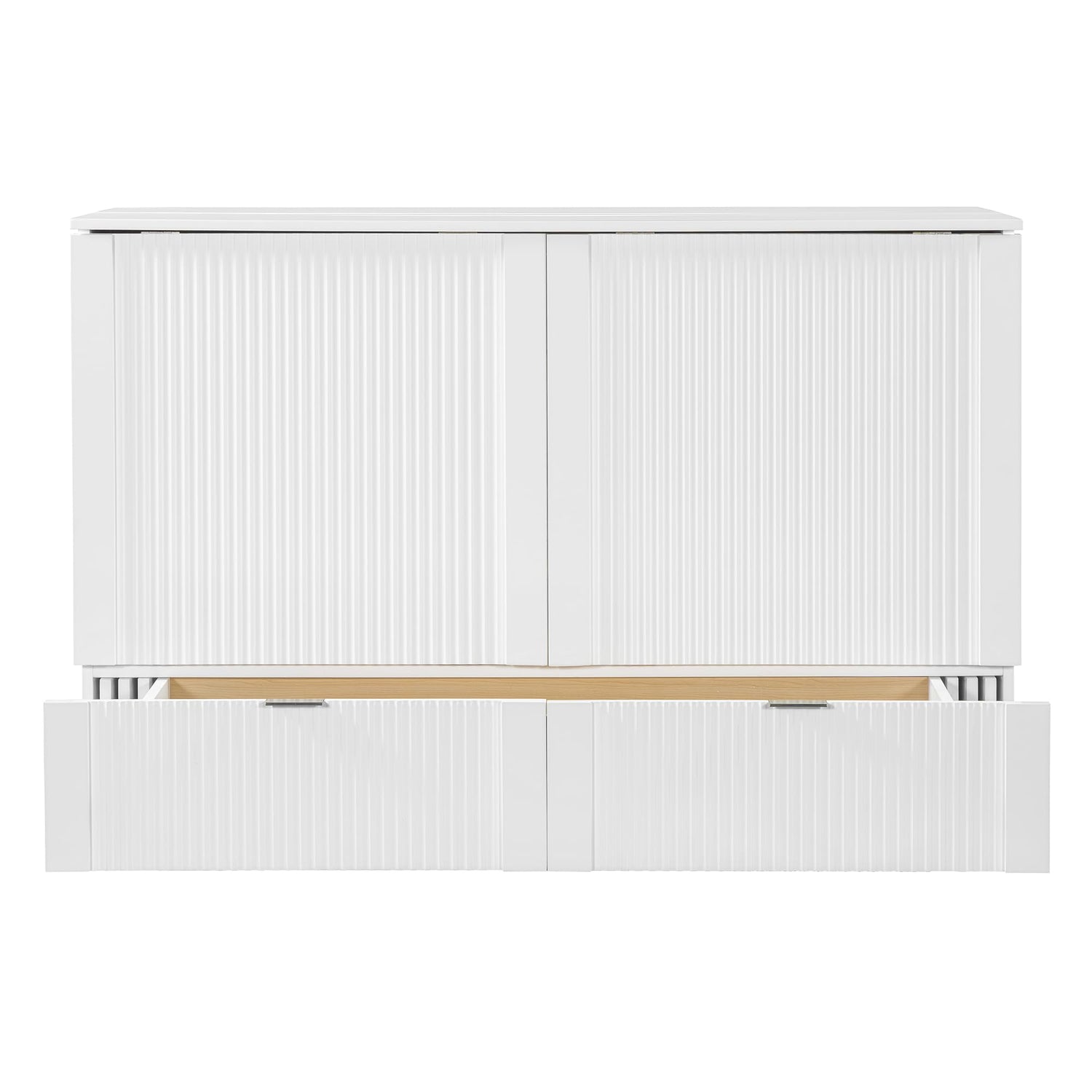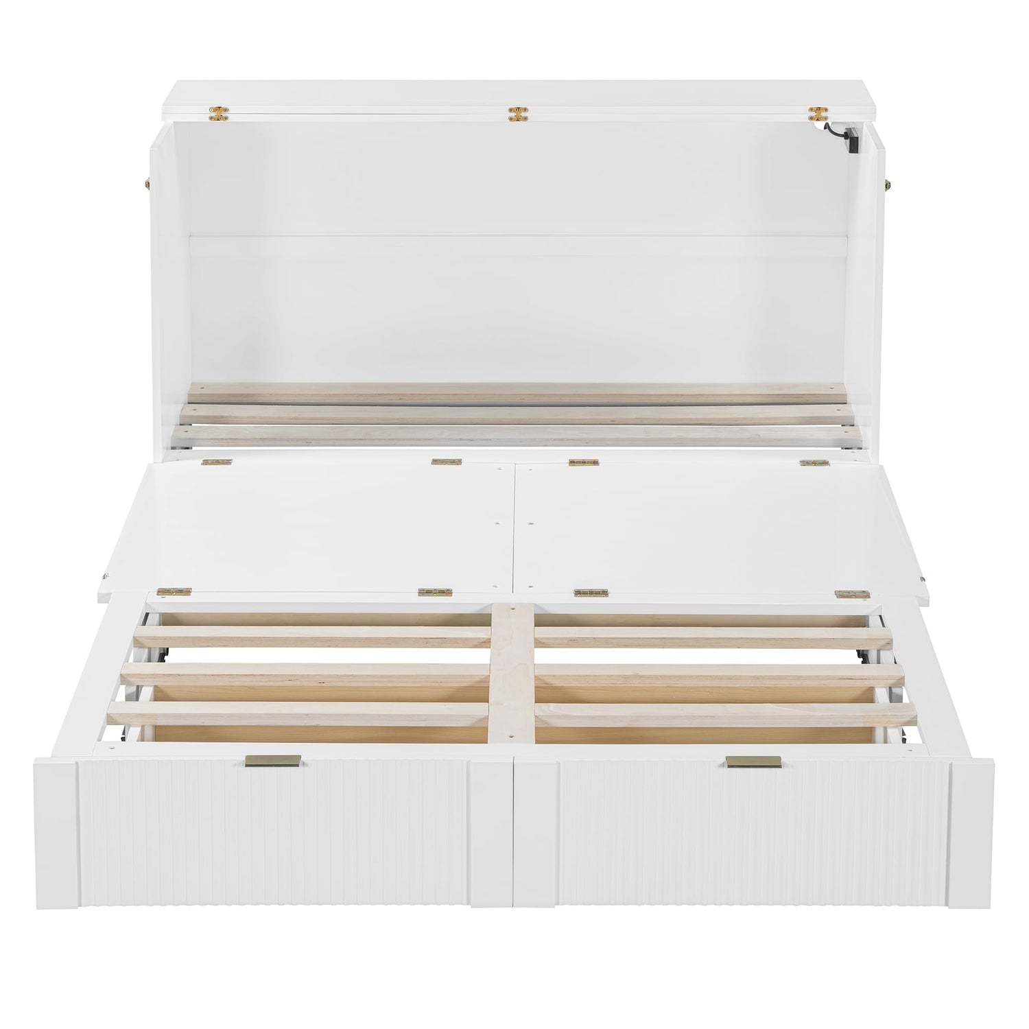 Harper & Bright Designs Queen Size Murphy Bed, Wood Queen Wall Bed with Drawer and a Set of Sockets & USB Ports, Pulley Structure Design, White