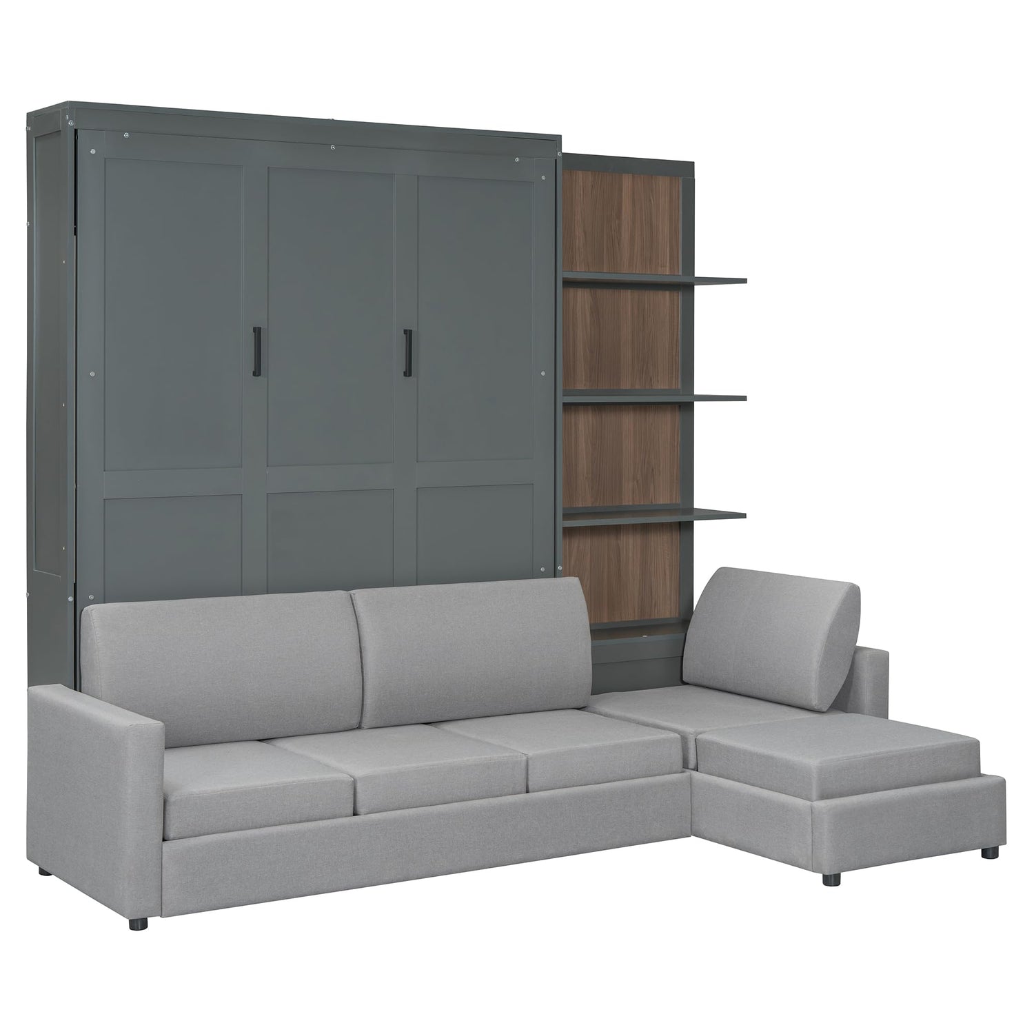 Harper & Bright Designs Queen Size Murphy Bed, Wood Queen Wall Bed with Sofa and Shelves, Gray