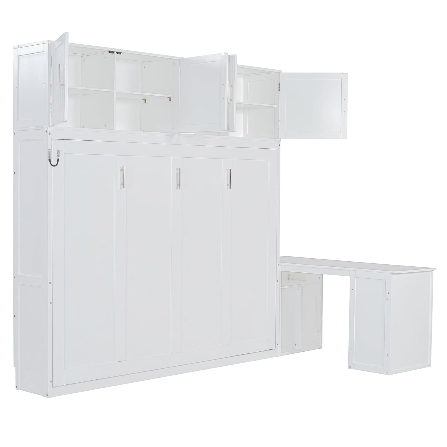 Harper & Bright Designs Queen Size Murphy Bed, Wooden Queen Wall Bed Frame with Desk and Storage Shelves and Big Cabinets, White
