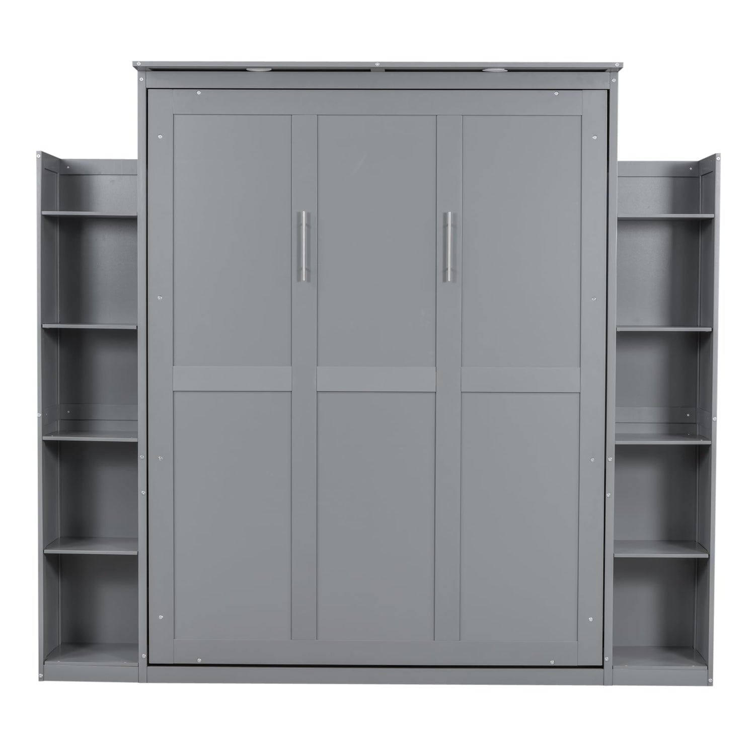Harper & Bright Designs Queen Size Murphy Bed, Wooden Wall Bed with Shelves and LED Lights, Gray