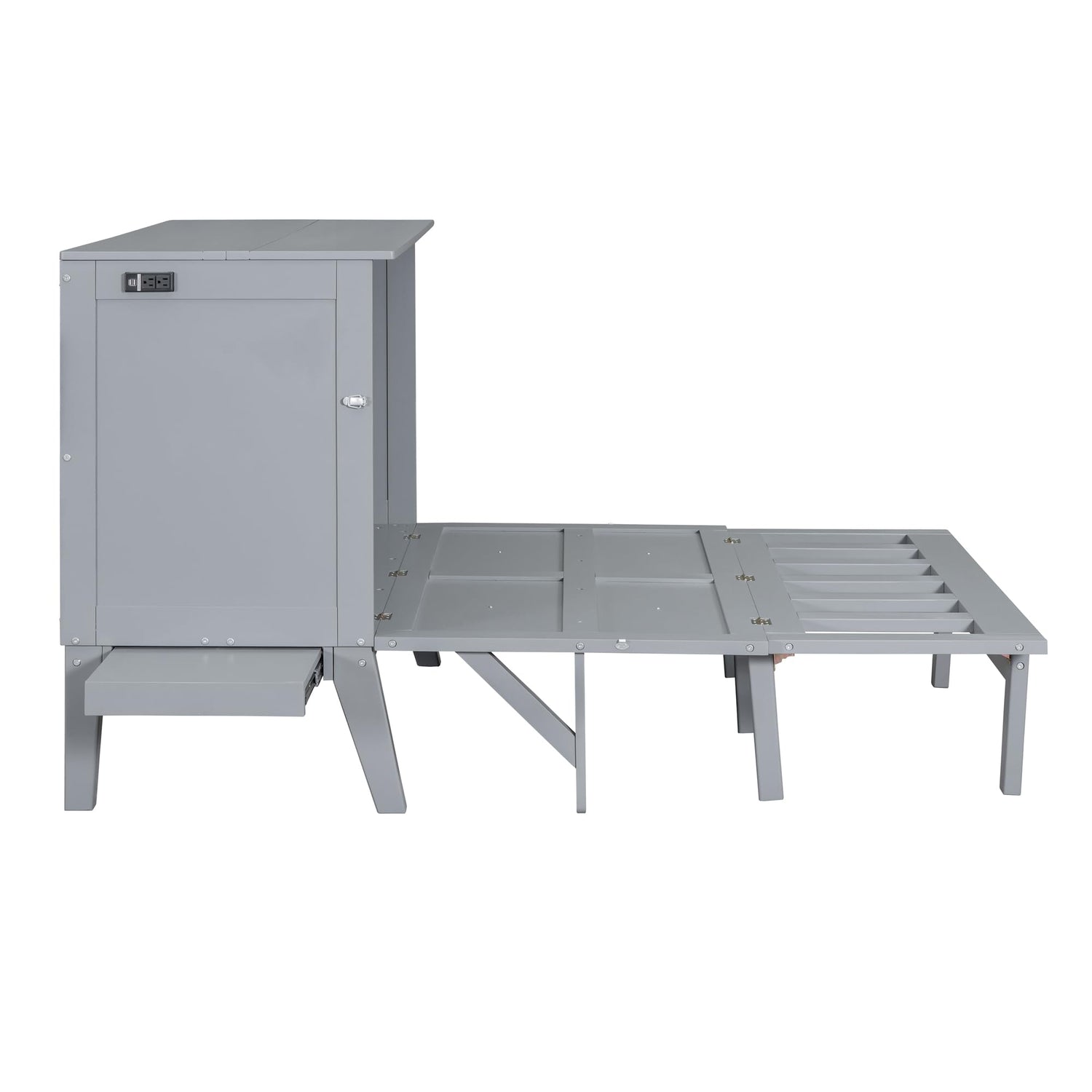 Jintop Murphy Bed Full Szie,Cabinet Hideaway with USB Port and Removable Shelves,Wall Bed W/ 2 Movable Desks,can be Folded,Platform Bedframe for Kids Bedroom,Student Dorms,Gray