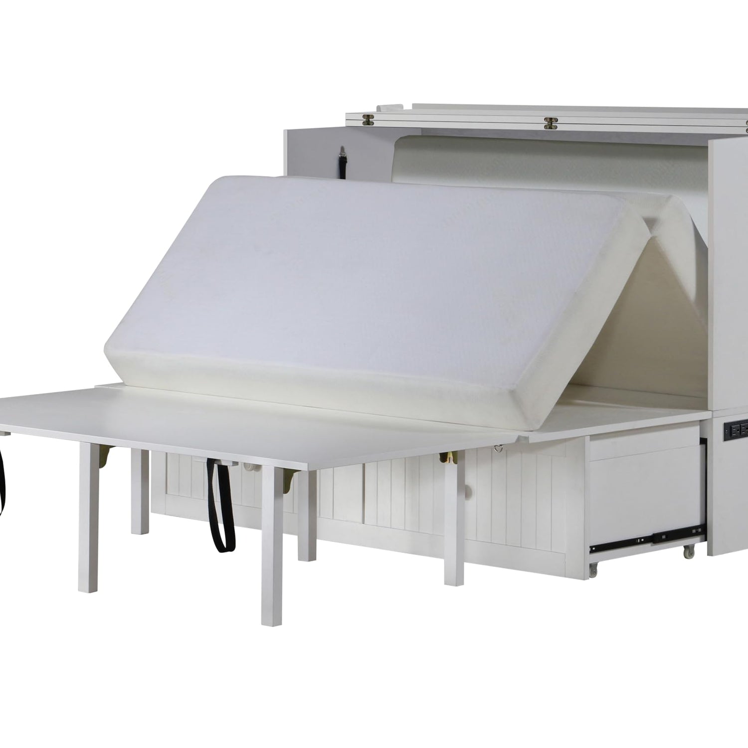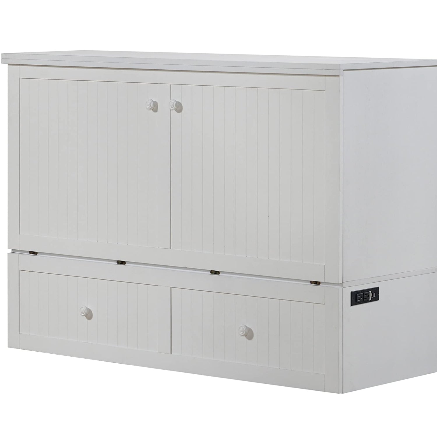 Mega Solutions Murphybedz Tuscany Murphy Cabinet Chest Bed with Charging Station 6 Inch, Queen (White)