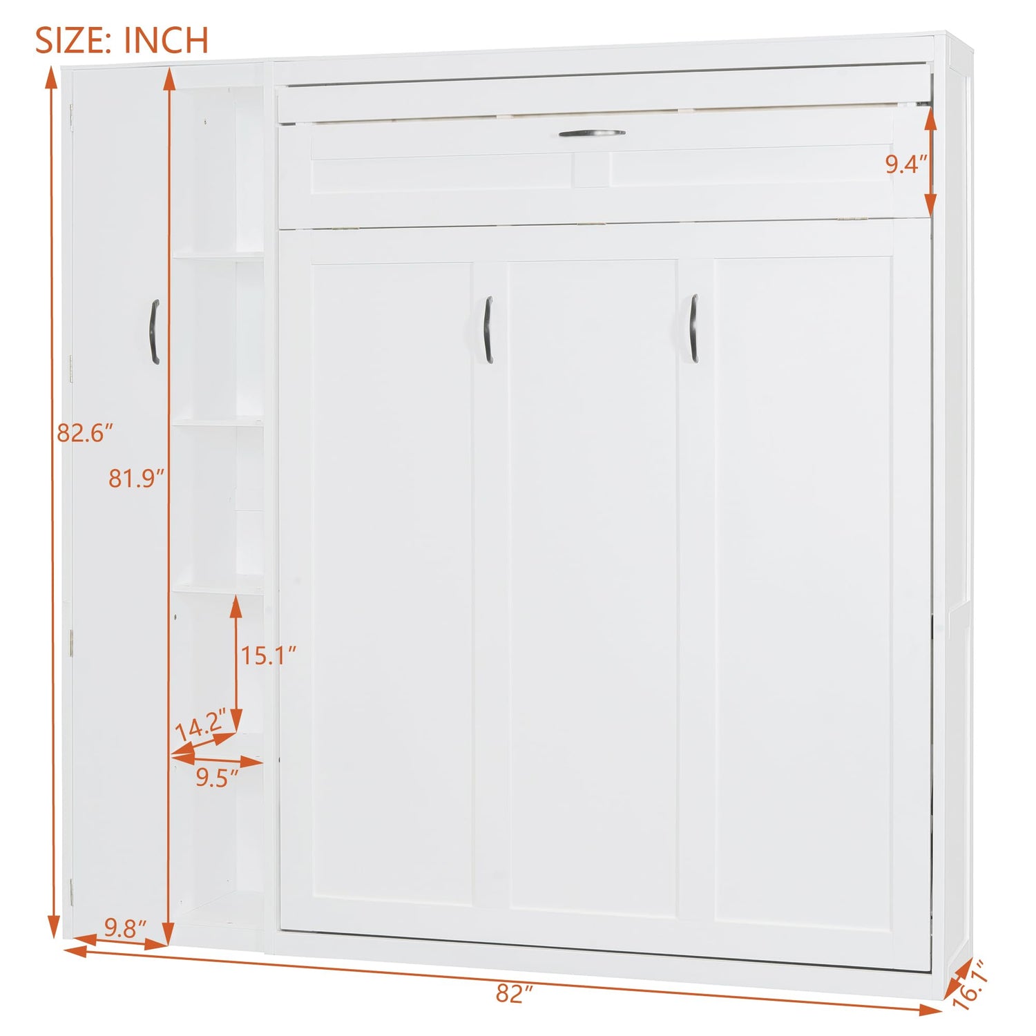 - 5. Dimensions & Easy Assembly: Full Size Murphy Bed features 82"L x 16.1"W x 82.6"H, Mattress is not included, Recommended mattress thickness is 8"-10", Partial Assembly is required, All the necessary parts, tools, and instructions are included in the package. Follow the instructions step by step, If you have any questions during the installation process, please contact us in time. Also Please NOTE: The Set will come in 2 boxes, they may not be delivered at the same time.