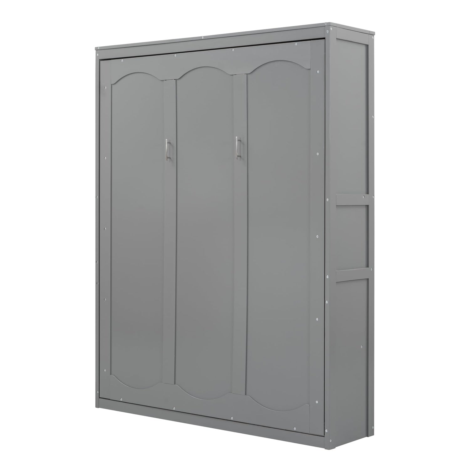 Merax Queen Size Murphy Bed, Wood Queen Murphy Cabinet Bed with Shelves, for Home Office or Small Room, Gray