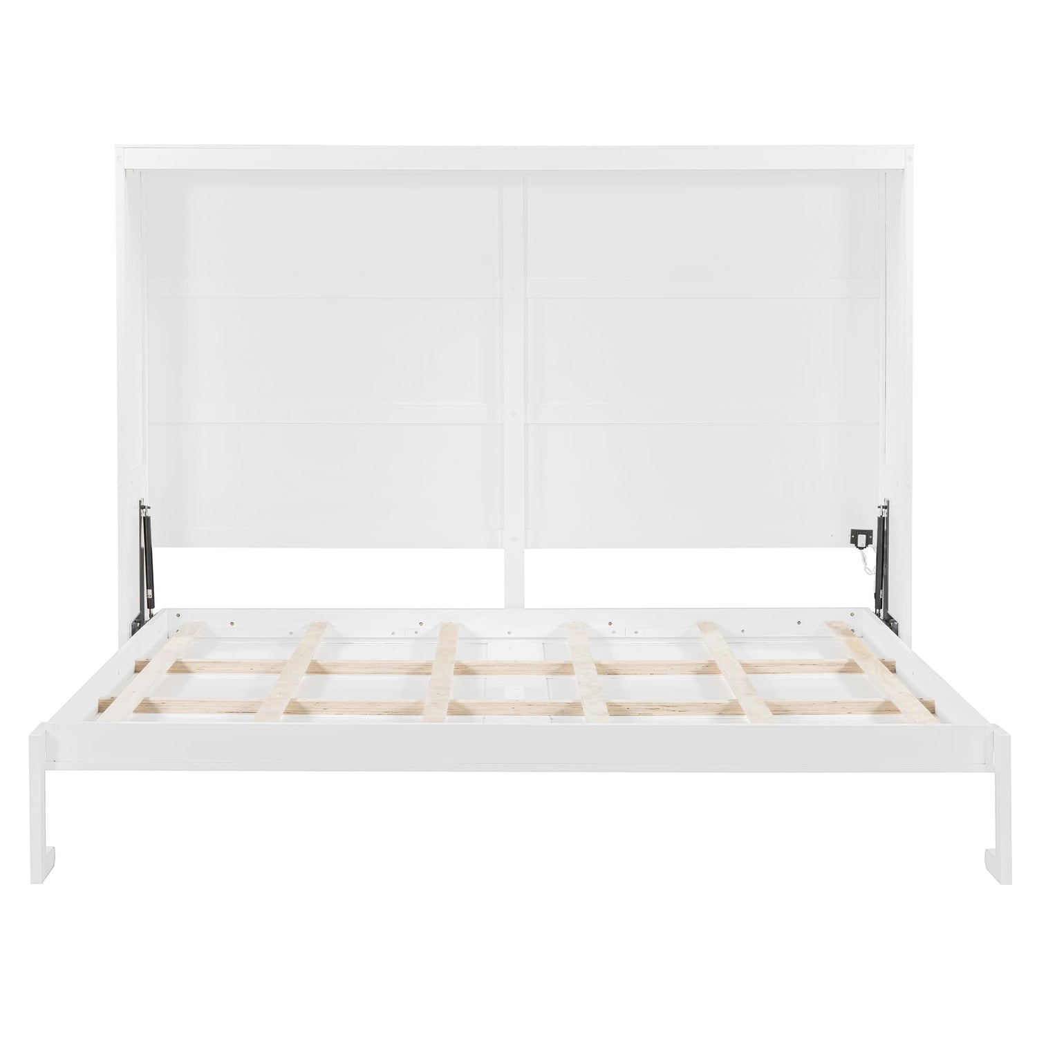 - Superior Quality: Made of durable industrial grade laminated MDF and plywood with dual piston metal folding mechanism designed for ease of use when lifting and lowering the bed. Wooden mattress support slats eliminate the need for a box spring.