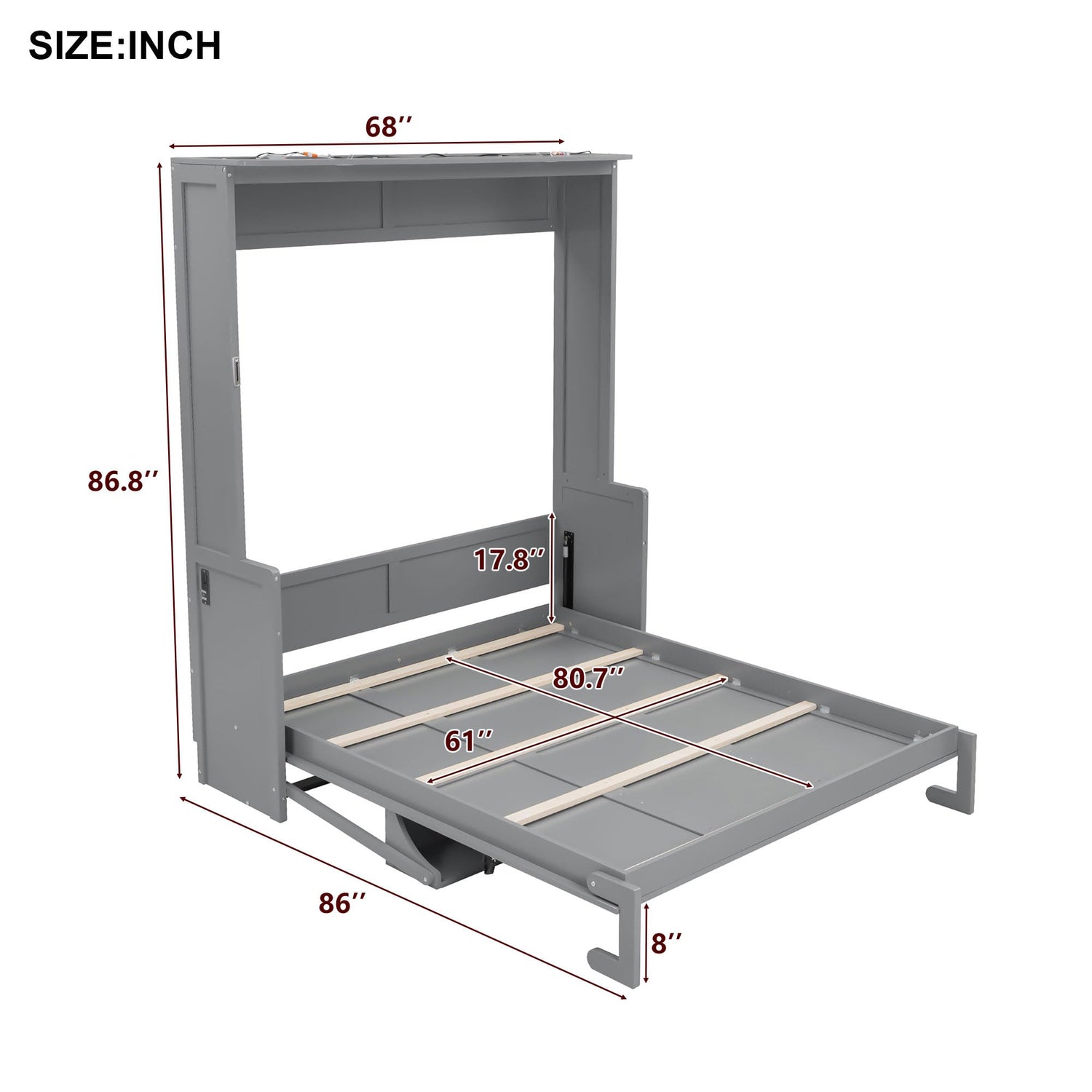 Details: ♬ This Queen - size Murphy bed is a masterstroke of multifunctional design, seamlessly integrating practicality and style. When not in use as a bed, it folds away to reveal a sleek desk surface, transforming your space into a productive home office or study area with ease.Illumination is thoughtfully provided with two integrated lights at the top, casting soft, focused light to illuminate your work or reading area. Meanwhile, the USB charging ports on the side panels offer convenient charging solutions for your devices, keeping your tech powered up while you work or relax.Crafted with a sleek, modern aesthetic, this Murphy bed is a perfect fit for small - space living, guest rooms, or home offices. It not only maximizes your room’s utility but also enhances the overall look with its stylish design, making it a versatile and visually appealing addition to any space.
