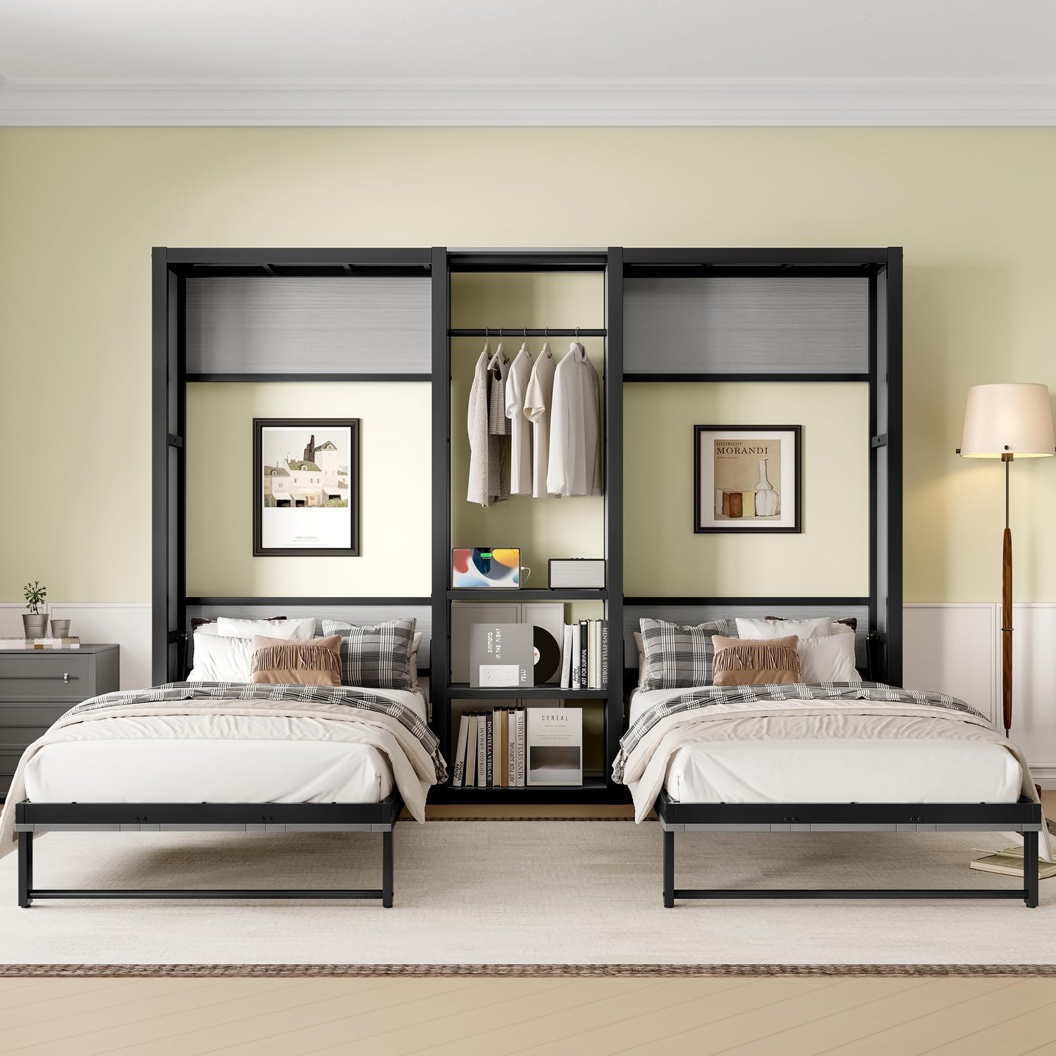 • 【Foldable Murphy Bed for Ultimate Space-Saving】This foldable Murphy bed is engineered to maximize your living space. Both twin-size beds fold effortlessly into the frame, freeing up precious floor area, making it a top choice for small apartments, guest rooms, or multi-purpose spaces.